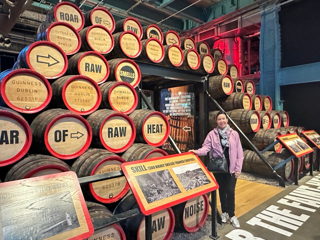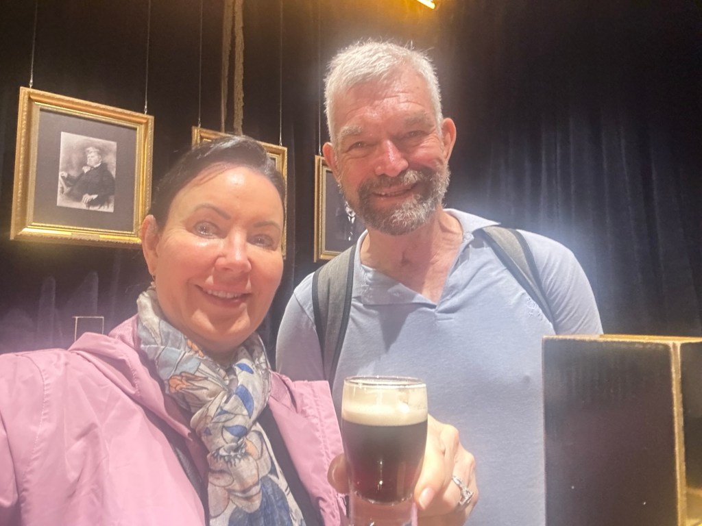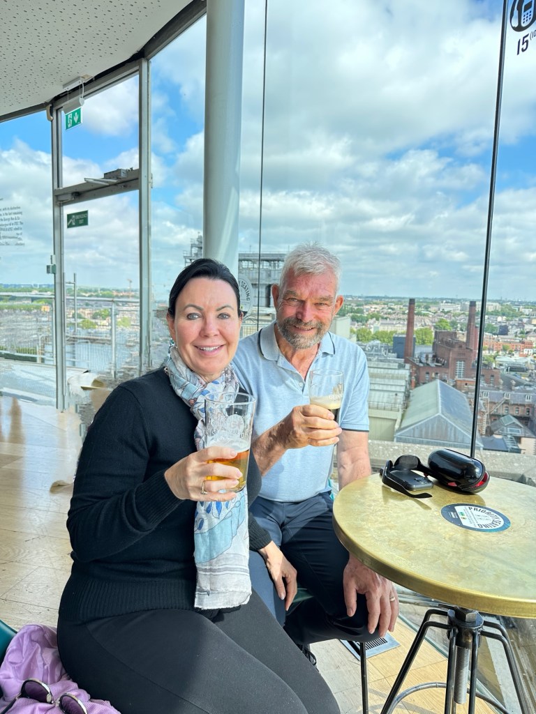 We had a 30 minute walk to get to the Guinness Storehouse for our 9.30 tour. Located at St James’s Gate in the heart of Dublin City is the home of Ireland’s most iconic beer. Arthur Guinness was just 34 years old when he signed the iconic 9,000-year Guinness lease, on a then-disused brewery site in 1759 for an annual rent of £45. It was here on this four-acre site where Arthur would hone his craft and build the global brand that Guinness is today. His signature is on every label. During the tour we savoured the sights, sounds, tastes, and aromas of Guinness. We journeyed through 7 floors, discovering the ingredients, history, and advertising of Guinness, ending up at one of Dublin’s highest points, the Gravity Bar. I enjoyed the Guinness Lager, whilst Frank preferred the stout (original) whilst looking out over Dublin’s iconic landmarks.