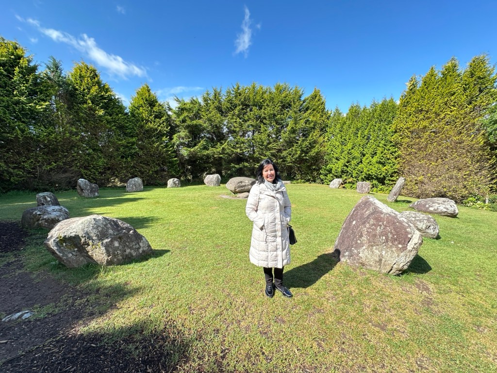 Kenmare, 24 kms from our little studio, was our starting point. This was a very quaint town with coloured buildings, and lots of activity – maybe it was meetup time after Sunday mass. We walked to the Stone Circle. Stone circles were built during the Bronze Age (2000 – 200 B.C.) and Kenmare Stone Circle is the biggest example of over 100 circles that exist in the south west of Ireland. They were believed to be built for ritual and ceremonial purposes and some studies have indicated that they were orientated on certain solar and lunar events such as the position of the sun on the horizon on a solstice.