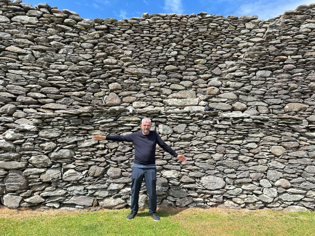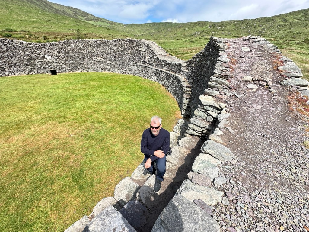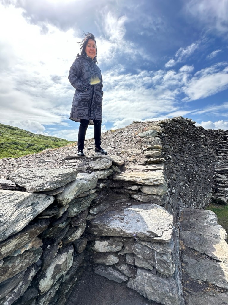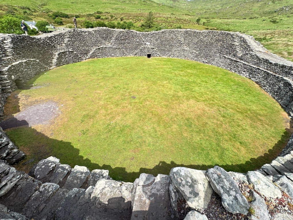 A very hairy drive on a narrow road took us up to Staigue Fort in Castlecove. It was thought to have been built during the late Iron Age somewhere between 300 and 400 AD. The local lord or king would have used it as a defensive stronghold. We tried to walk around the top of the fort, but were nearly blown off!