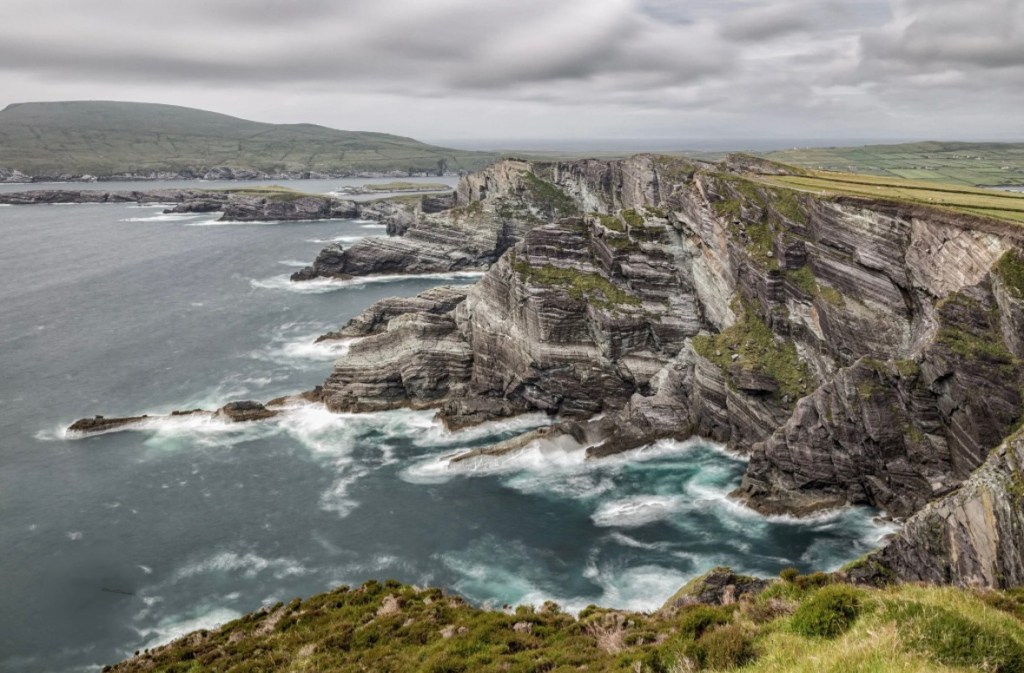 The rugged Kerry Cliffs at Foilnageragh on the Skellig ring stand over 1,00O ft in height, and offer a wonderful vista of the neighboring Puffin Islands.