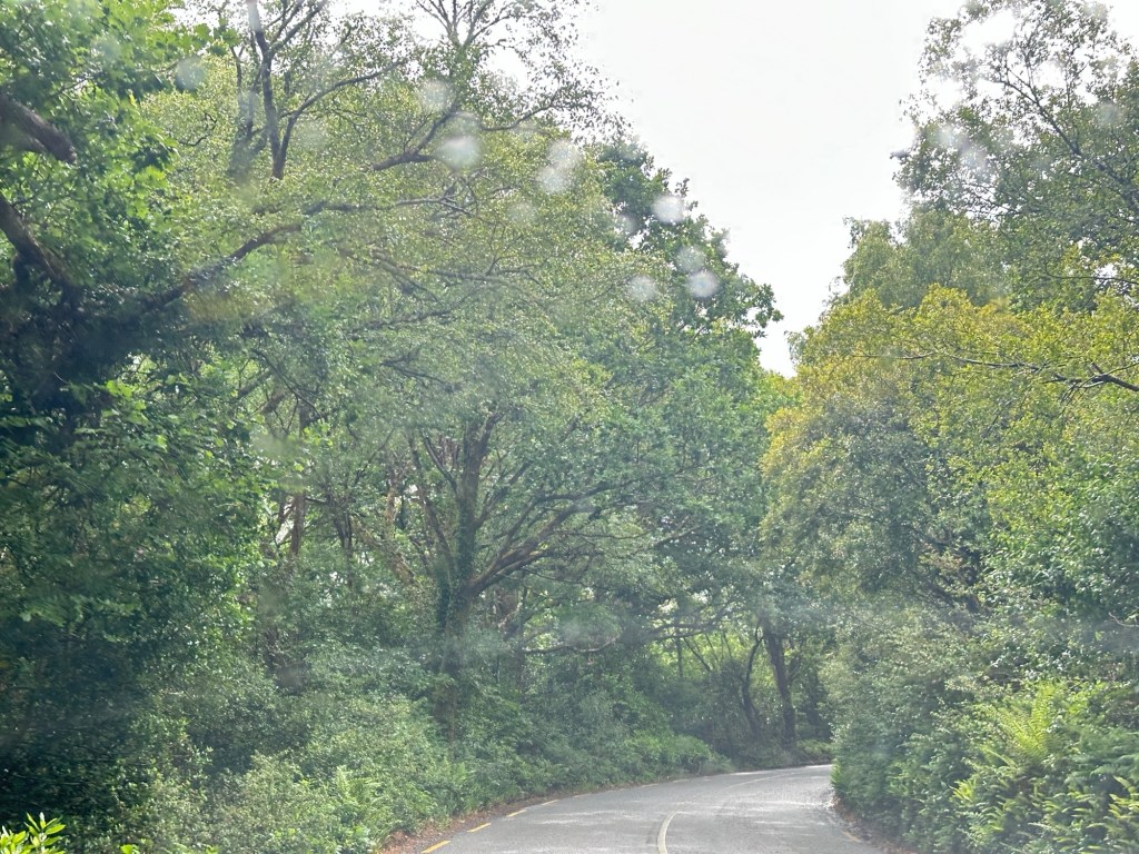 Heading north – more pretty countryside. The spring flowers have been just divine – besides the prolific rhododendrons, the foxgloves (although very pretty, they are highly poisonous ) are in flower, as are the roses (all seem to be strongly perfumed), arum lilies, and many more. The roads are lined with white paper daisies and purple heather. It’s all a picture. The striking ornamental plum trees look stunning in amongst all the greenery. Unfortunately the rain is starting to settle in.