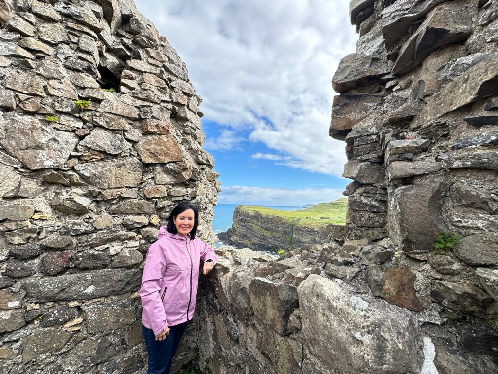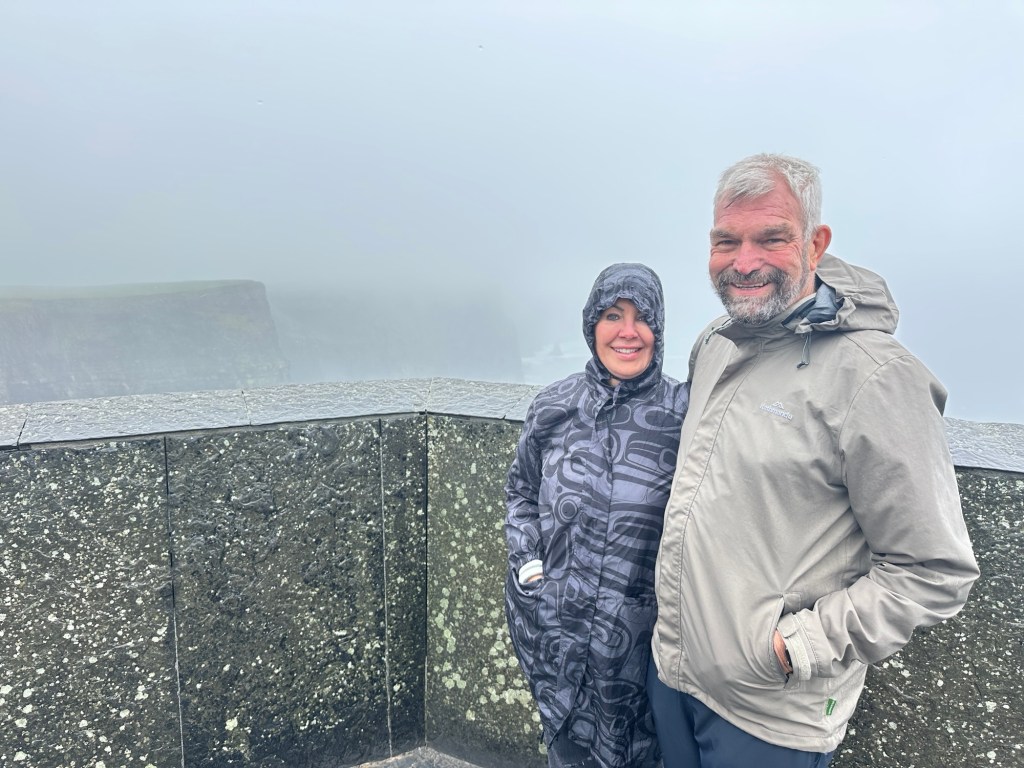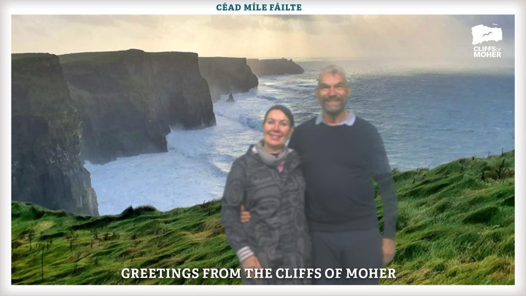 There was a great interactive exhibition to walk through before we faced the elements ( we were secretly hoping the rain would pass before we went outside to view the cliffs, so we looked at the display first). Unfortunately the wind had picked up , and we were nearly blown off the Cliffs of Moher! That would have been a talking point!