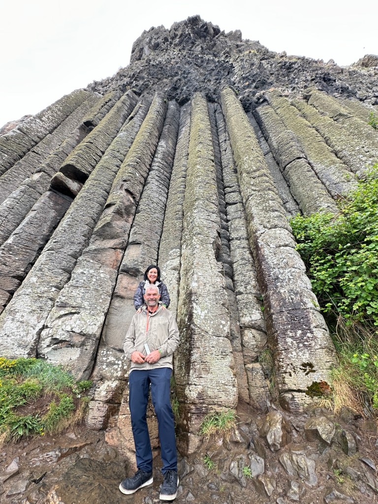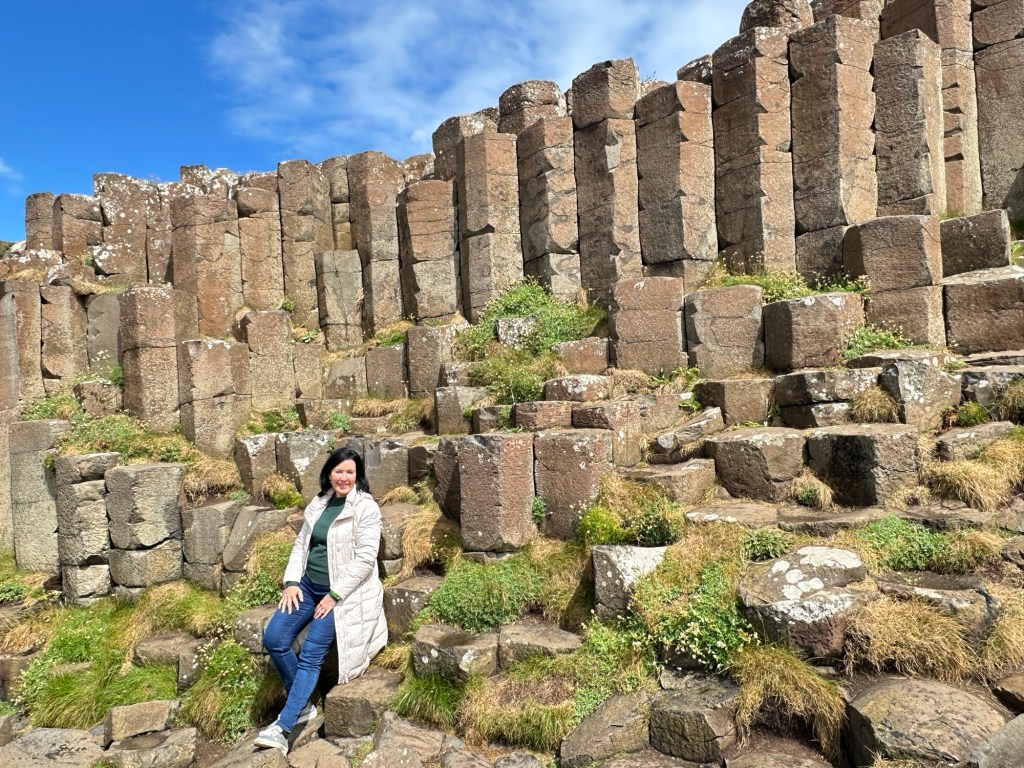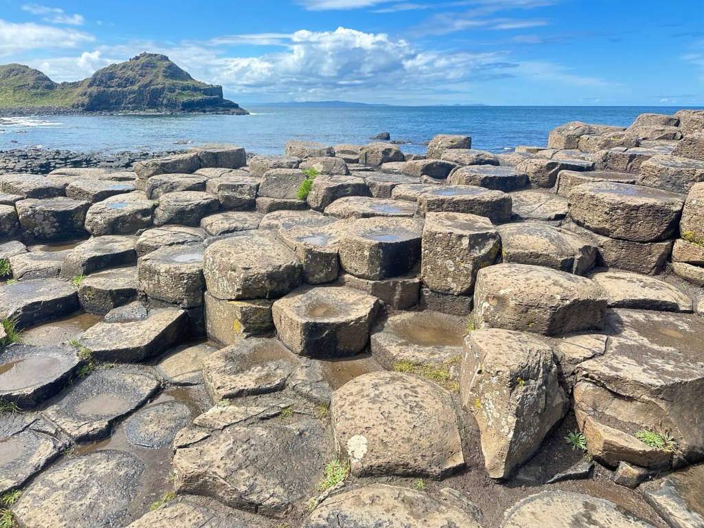 We left Derry and headed north. Our first stop was Dunluce Castle, home to the McQuillan family who built the fortress around 500 years ago. Because we had watched Game of Thrones, we recognised the castle as the House of Greyjoy. Dunluce Castle is located on top of cliffs that collapse into the North Atlantic below. Its dramatic history of violence, intrigue and rebellion is matched by the scandal and betrayal committed by the Greyjoys in Game of Thrones. We explored the romantic ruins, grounds, and surrounds before driving 15 minutes to the Giant Causeway.