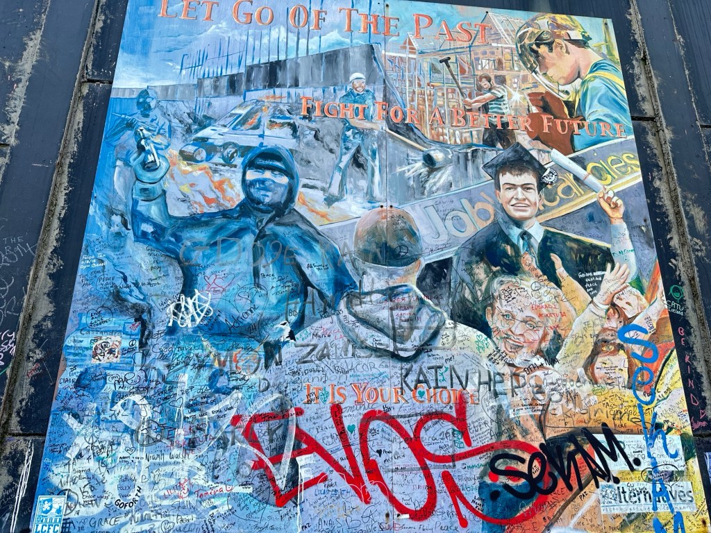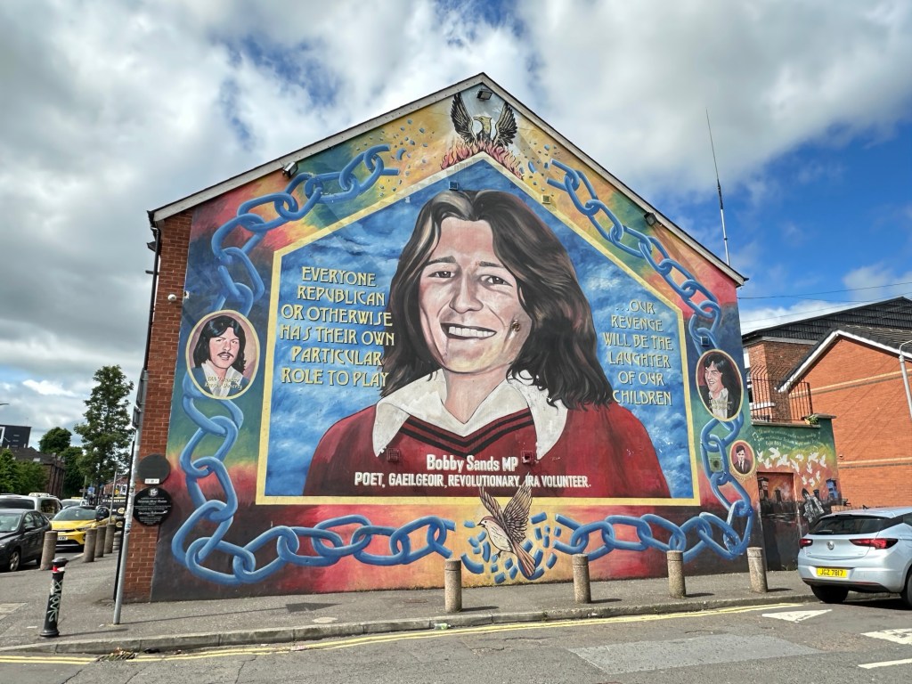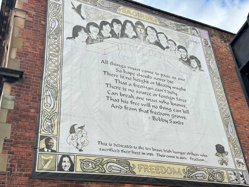 From our hotel we walked to Bobby Sands mural. Bobby was a member of the Provisional Irish Republican Army who died on hunger strike while imprisoned at HM Prison Maze in Northern Ireland. His famous quote is “No part is too great or too small, no one is too old or too young to do something”.