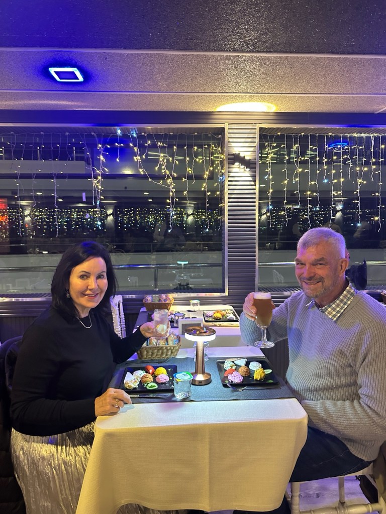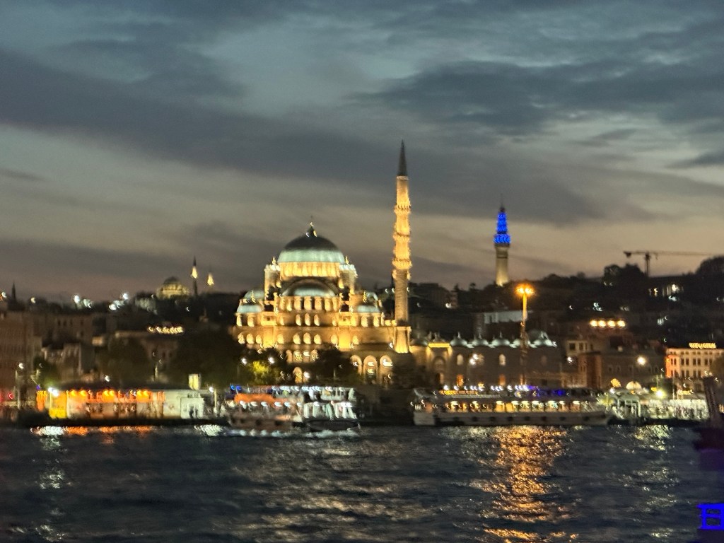 This evening we had a Bosphorus dinner cruise booked. Frank had gone to a lot of trouble to book the evening as our belated wedding anniversary celebration. Unfortunately the night didn’t pan out as well as we were anticipating – there were complications with the pick up; you had to pay for a pre dinner drink at €10 each (for beer and house wine) even though we had paid for the drinks package (it only went from 9-11pm, and we had arrived at 8pm); the entertainment was great but only the tables around the dance floor could see anything, and then others stood up in front of you to take photos); almost everyone was smoking, so if you went outside to look at the lights you had to fight your way through the smoke, plus the doors kept being left open so inside smelt like an ashtray as well; the food was average; and then we did a grand tour of Istanbul to get home – we could have walked back in 15 minutes had we known what route the driver was taking! Sometimes the best laid plans go astray. It will be a memorable evening!