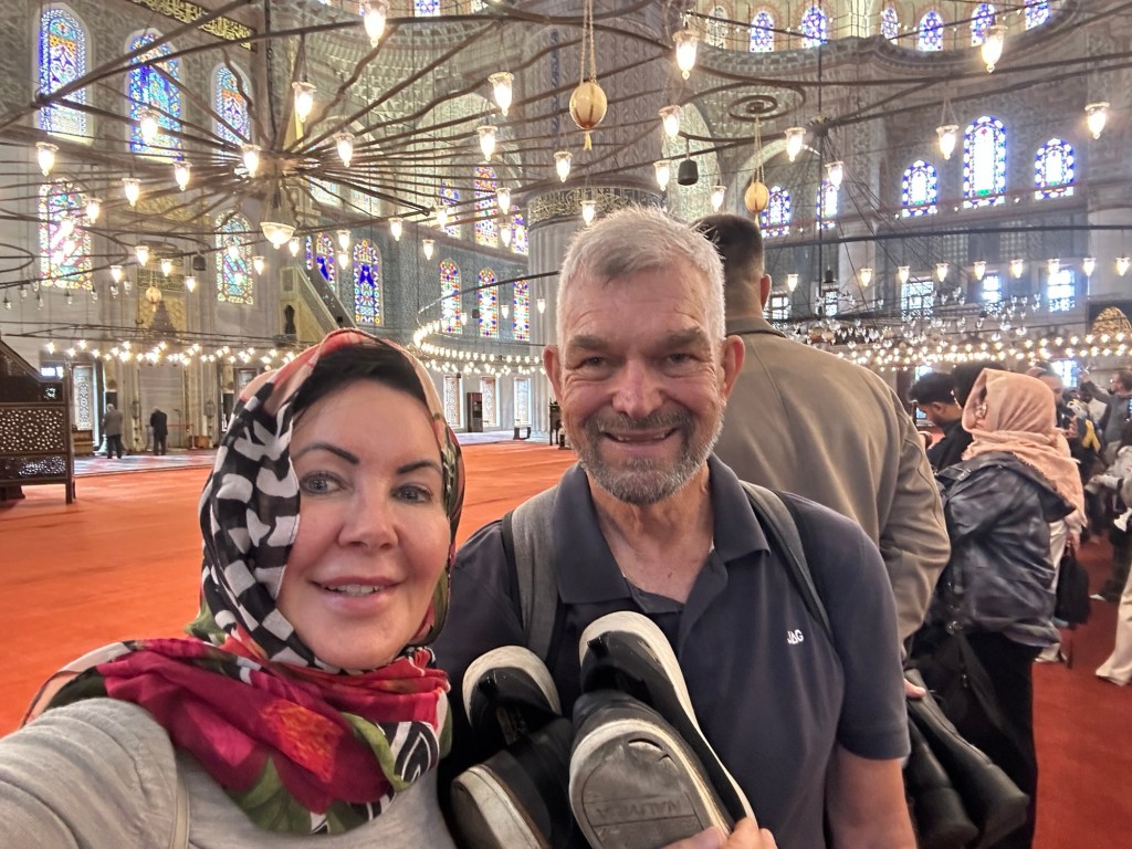 Somewhat pepped up, it was time to hit the Grand Bazaar! The Grand Bazaar in Istanbul is one of the largest and oldest covered markets in the world, with 61 covered streets and over 4,000 shops on a total area of 30,700 m². I was ready to shop – not sure Frank was! We gave it a red hot go – I managed to buy a silver chain, pearl ring, silk scarf, and more. Such a colourful chaotic atmosphere, people buzzing about, shoppers and vendors alike!