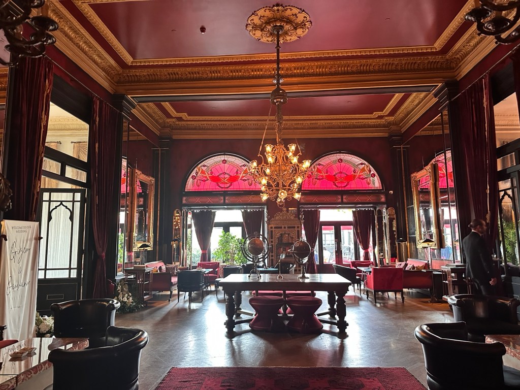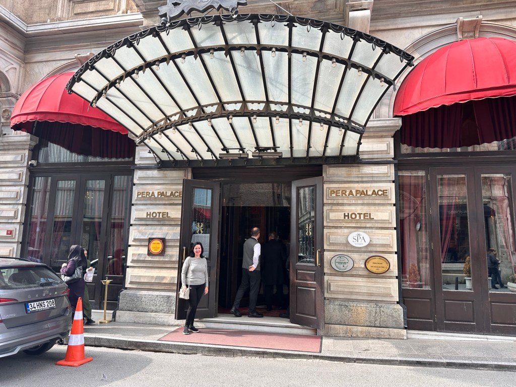 Ten minutes walk away was the Pera Palace Hotel. This famous hotel began its journey in 1895, for the purpose of hosting the passengers of the Orient Express. It was the first modern hotel in Istanbul to have electricity during the late Ottoman period, and also the first hotel to establish an electric lift. With the deluxe assistance of a lift boy, famous guests like Zsa Zsa Gabor and Ernest Hemingway could appreciate the fun of traveling in the ascending cage up to their room. Crime story novelist Agatha Christie had a favorite place in the hotel – number 411 – which now carries her name. We had considered having high tea in this charming luxurious hotel, but after our recent morning tea, we thought a drink would suffice… so beer for Frank, and a gin and tonic for me! (Champagne only came by the bottle… at a price!)
