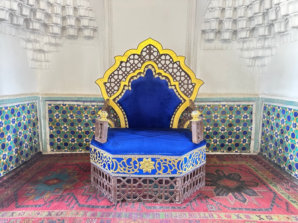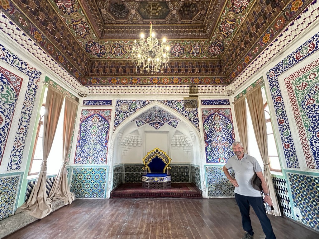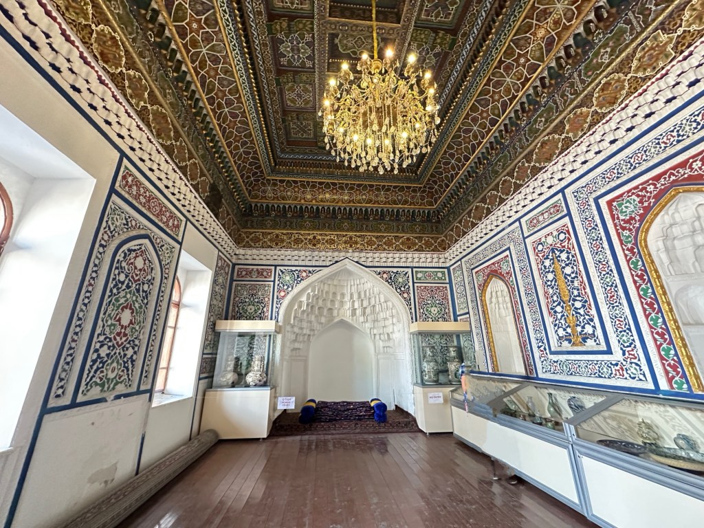 We stop at the Palace of Khudayar Khan (built 1862-72). Only 19 opulent rooms survive from the original 113 rooms- the Soviets burned the palace when they occupied Uzbekistan in 1918.