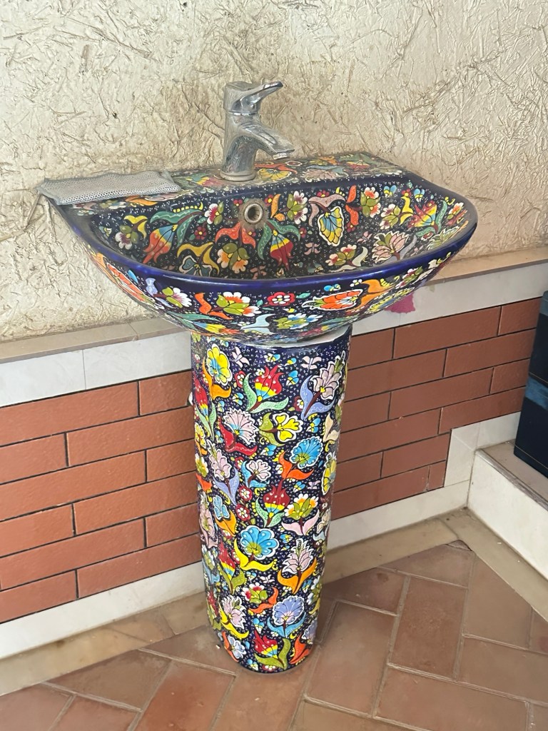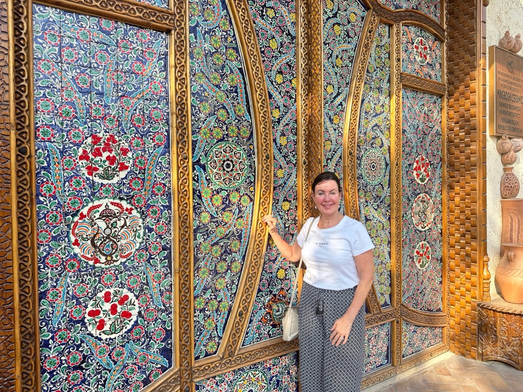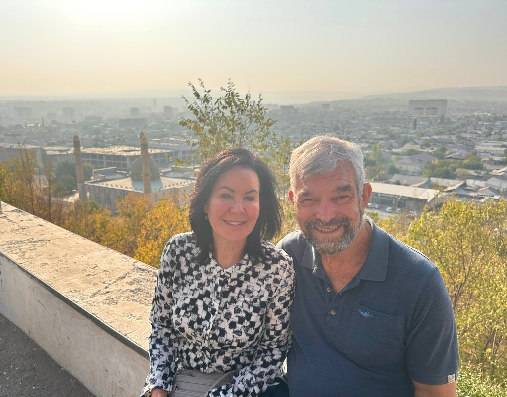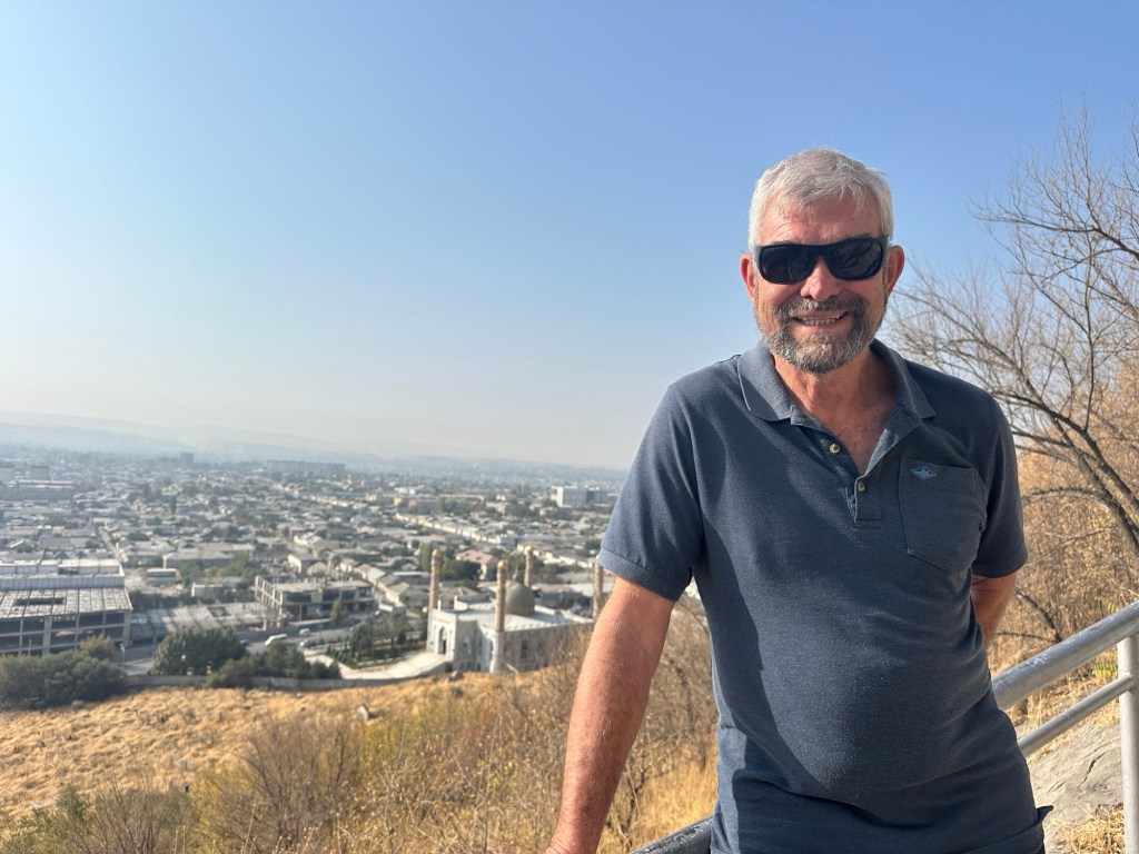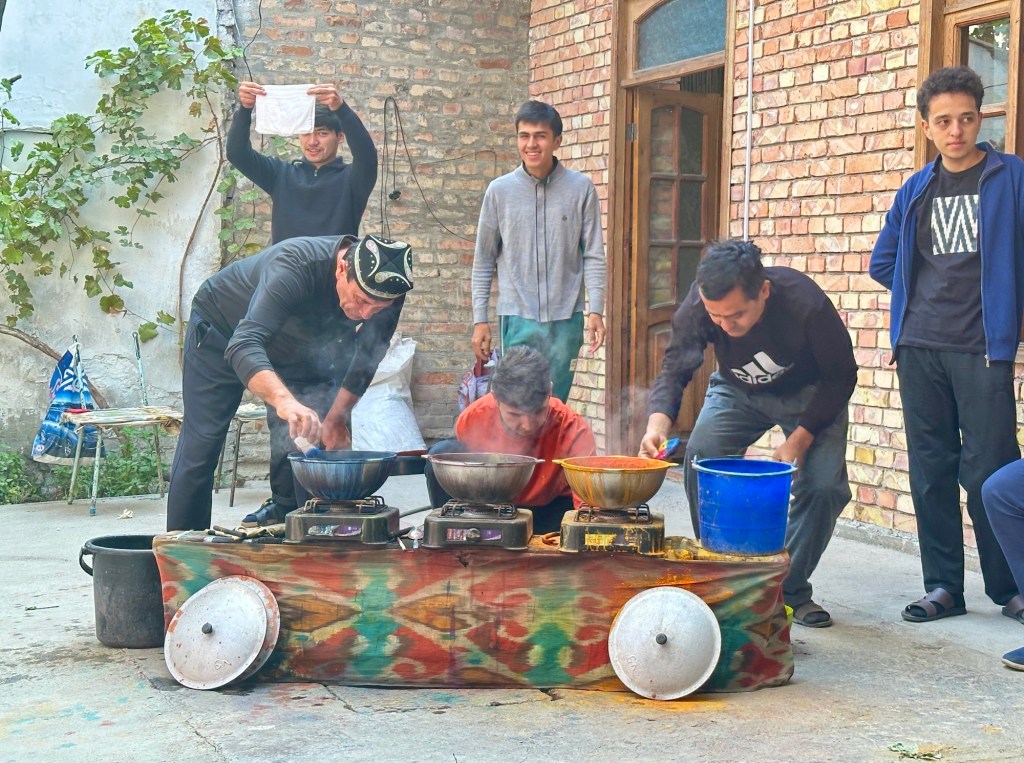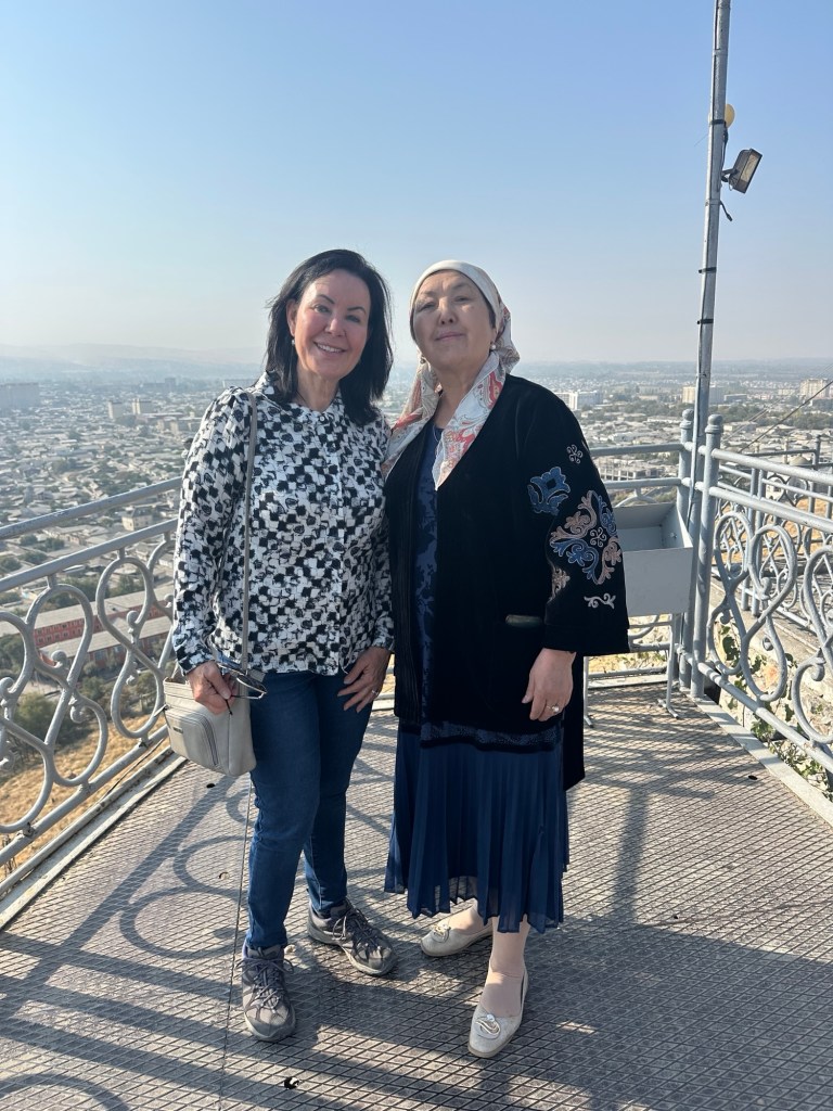 Another hour’s drive to Margilan where we had one night at the Atlas Hotel. Found a nice Turkish restaurant for dinner, after we’d walked for miles down one street that had 50 men’s shops! Had a yummy dinner.