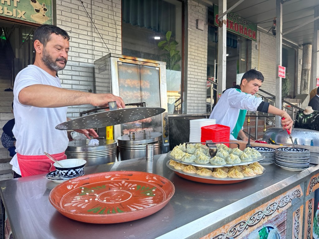 We head to the handcraft markets, stopping for dumplings at a local restaurant. Pumpkin, spinach and beef mince – of course accompanied by bread and tea. Very nice.