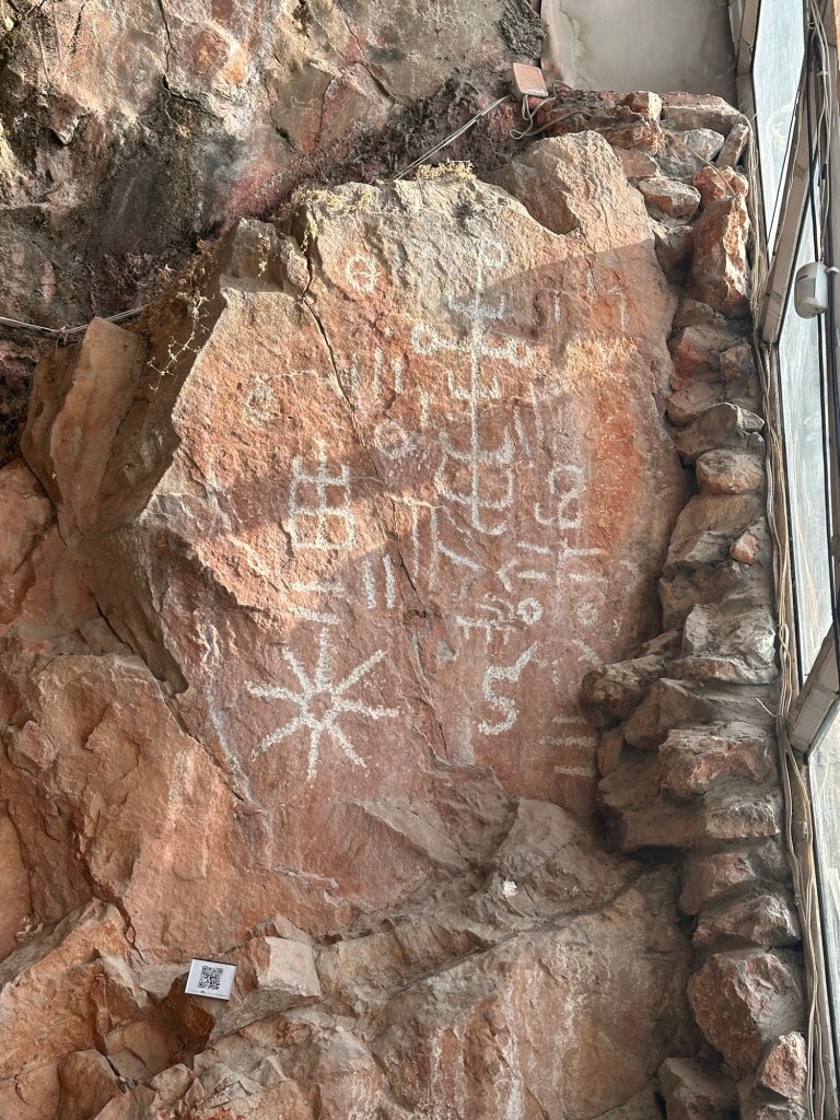 Osh was an important position on trading routes of the Silk Road. It nestles at the base of the Takht-i-Suleiman (Throne of Suleiman), a huge slice of rock that ranks amongst Central Asians as Islam’s third-holiest shrine, after Mecca and Medina, thanks to an early appearance by the prophet Suleiman (Solomon). Babur built a personal chillakhana (chamber for 40-day retreat) here in 1496, and the small shrine is still known as the Dom Babura (House of Babur). We hiked up the 1130metres hill, to get a panoramic view of Osh. Met a new best friend, Tanya, who invited us to Bishkek, over and over again. They love tourists. Half way up the hill was the National Museum of History and Archaeology – based on what has been uncovered, this settlement dates back to the end of the second millennium and by the beginning of the first millennium BC ( 3500 years old).