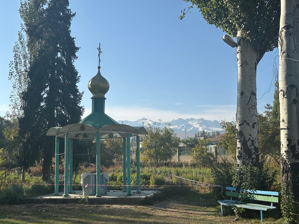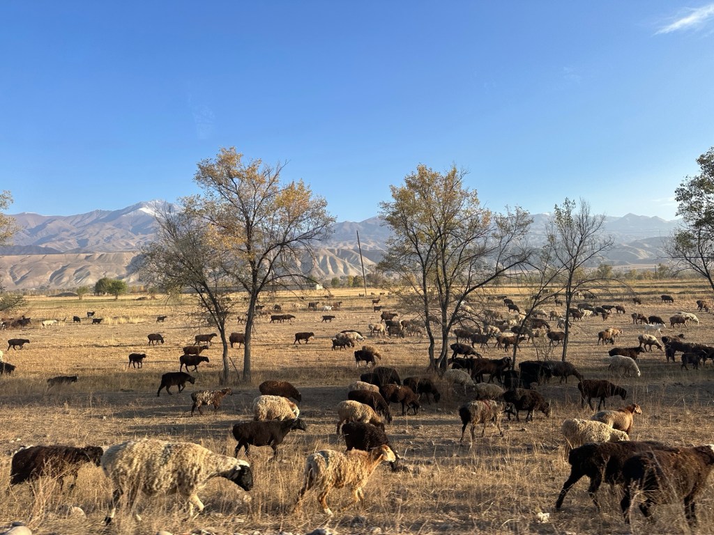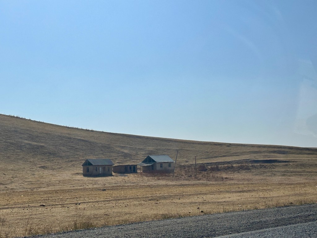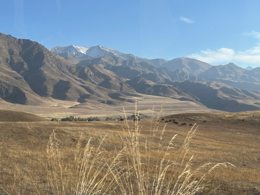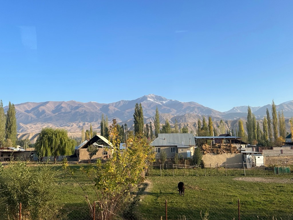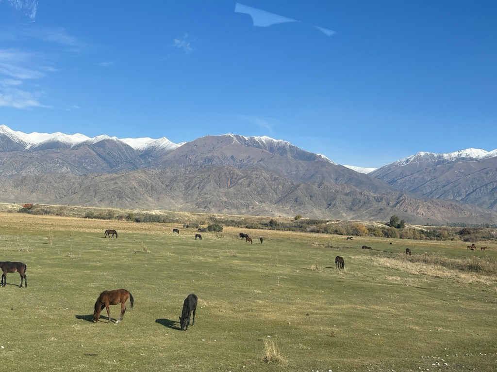 Ninety minutes of driving through picturesque green farmlands, and bordered by the stunning Tian Shan mountains, we arrived in the Karkyra Valley, where we completed our last border crossing- this time between Kyrgyzstan and Kazakhstan.