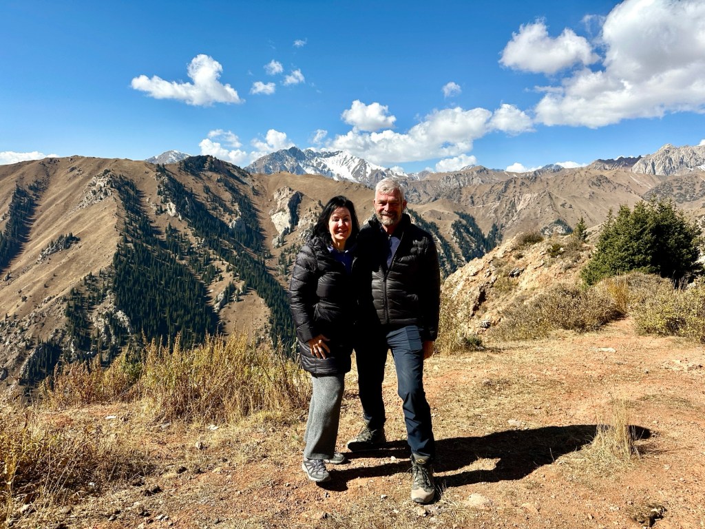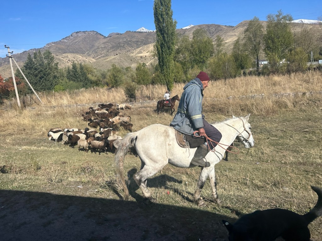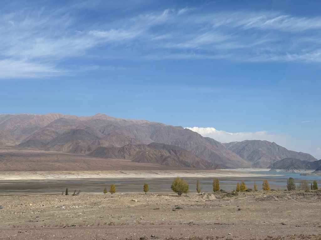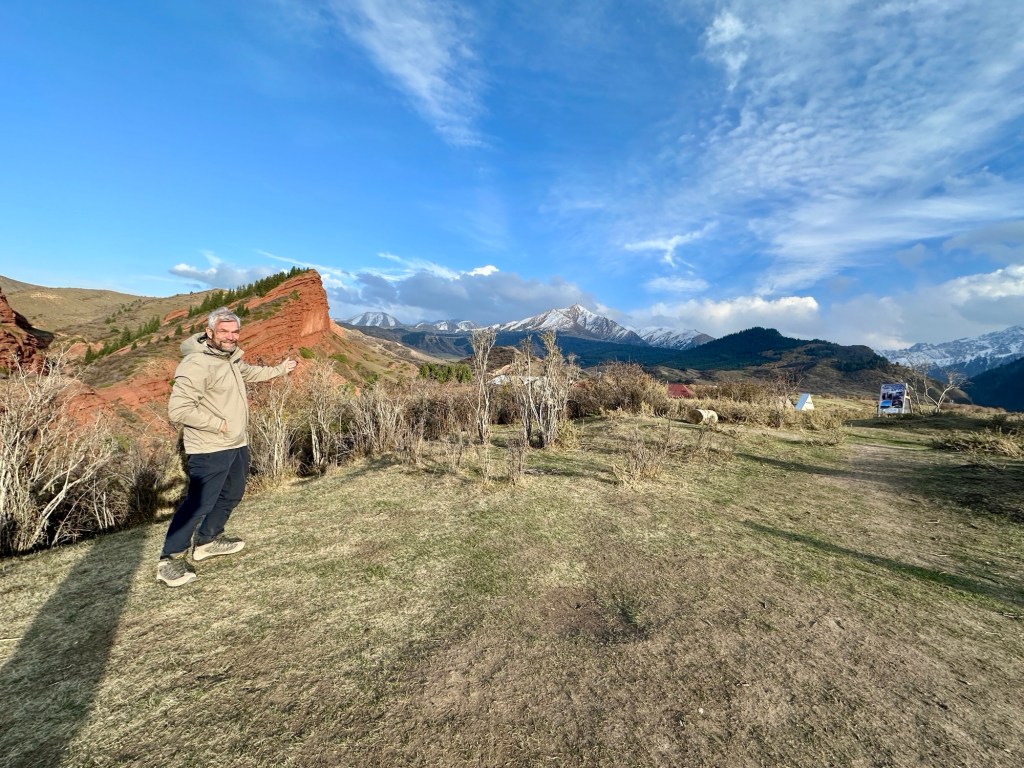 Another hour’s drive to the border, where we passed the border formalities with minimal fuss- only 500 metre walk. Our Kyrgyz guide, Ernest and driver were there to meet us.