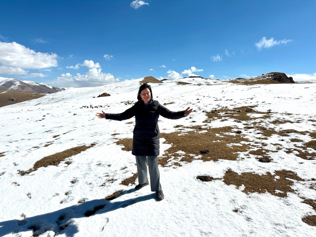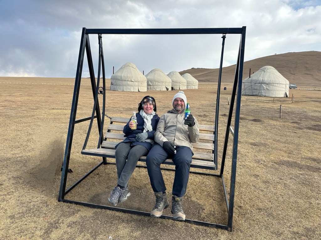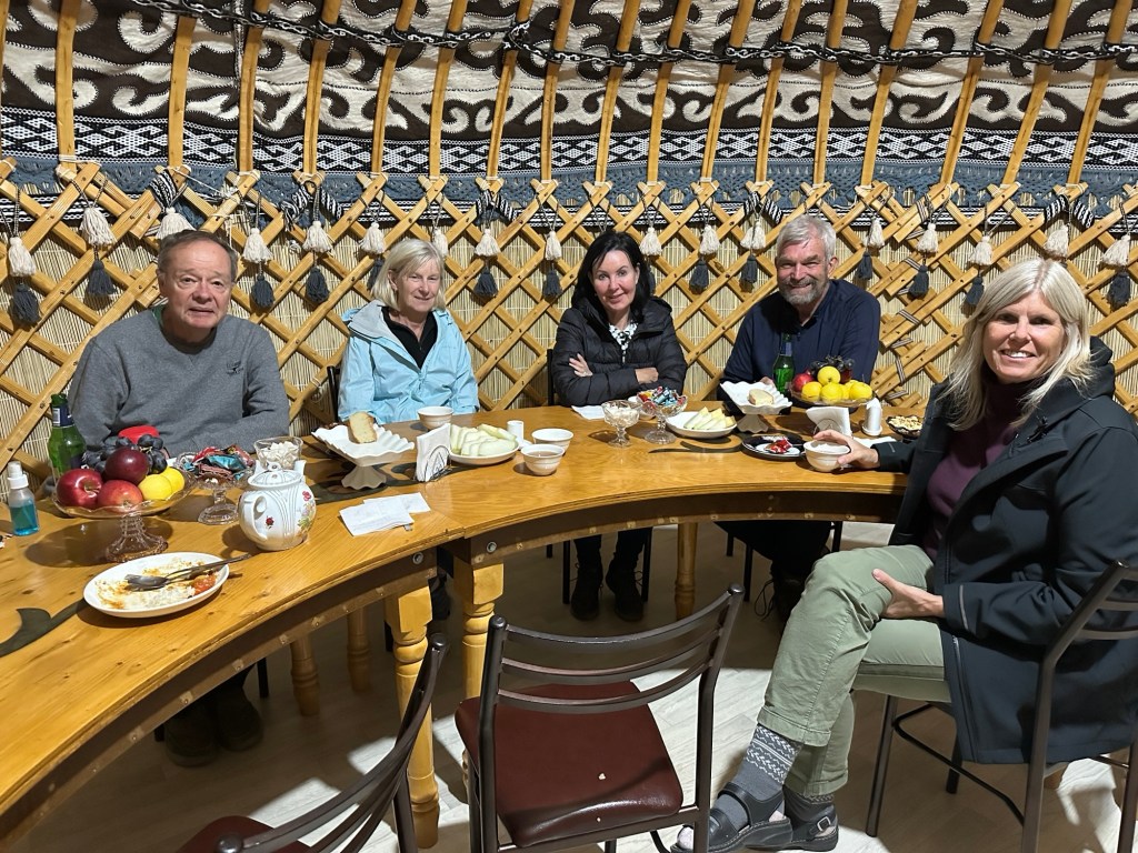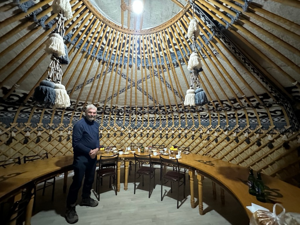 Early breakfast ready for our five hour drive to Son-Kul Lake. We had to traverse two mountain passes through the Tien Shan Mountains, all on unsealed roads, the first was 3280 metres, the second 3324 metres. Couldn’t stop taking photos of the spectacular alpine scenery.