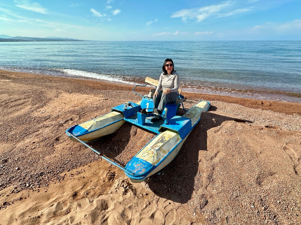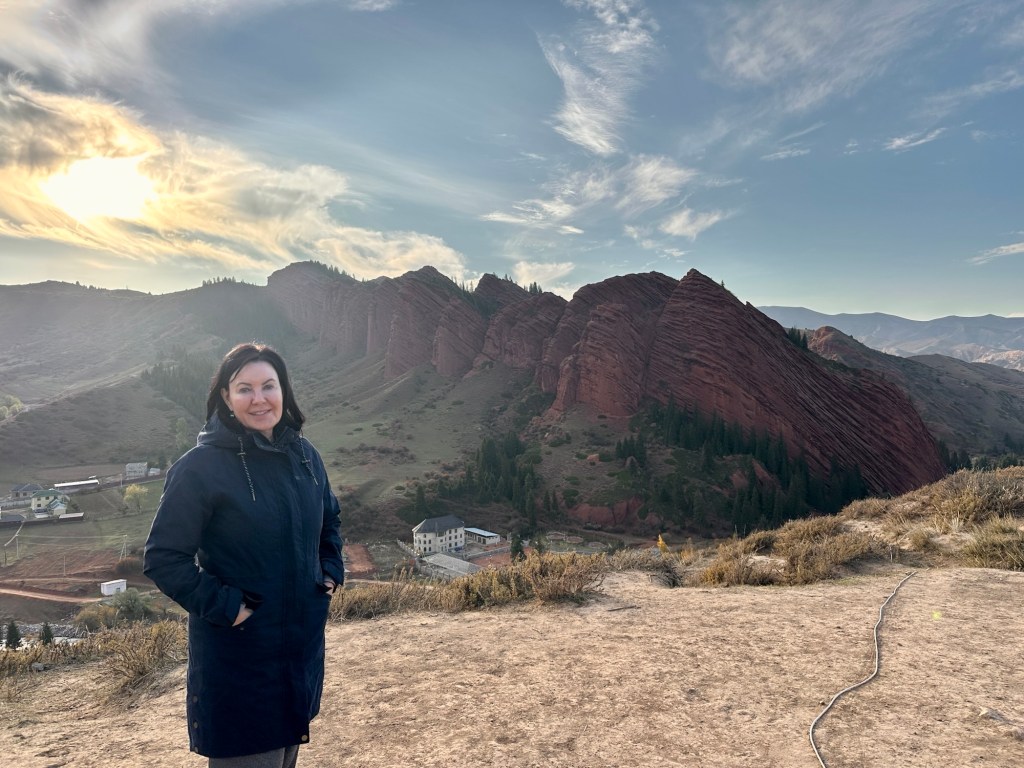 The pearl of the Tian Shan is Issyk-Kul, a great turquoise inland sea dusted with sandy shores and framed on both sides by snow-capped peaks. At 180km long, it is the world’s second-largest alpine lake, after Bolivia’s Lake Titicaca, and the second-largest saline lake after the Caspian Sea. The local Kyrgyz named it “Warm Lake” because, despite the altitude, it never freezes, due to its slight salinity. Unusually, over 60 streams flow into the lake but none flow out. Heidi braved it and had a quick dip!