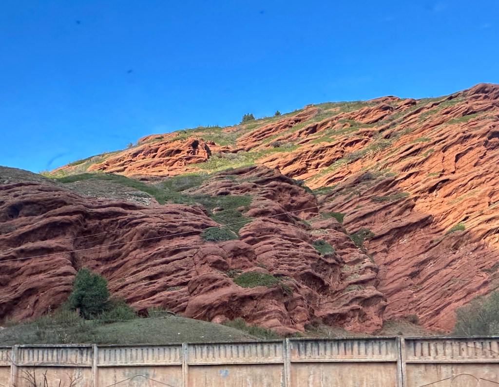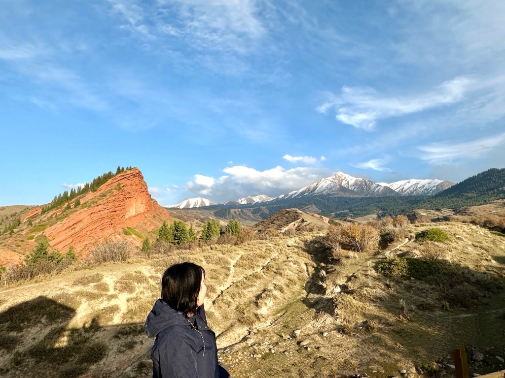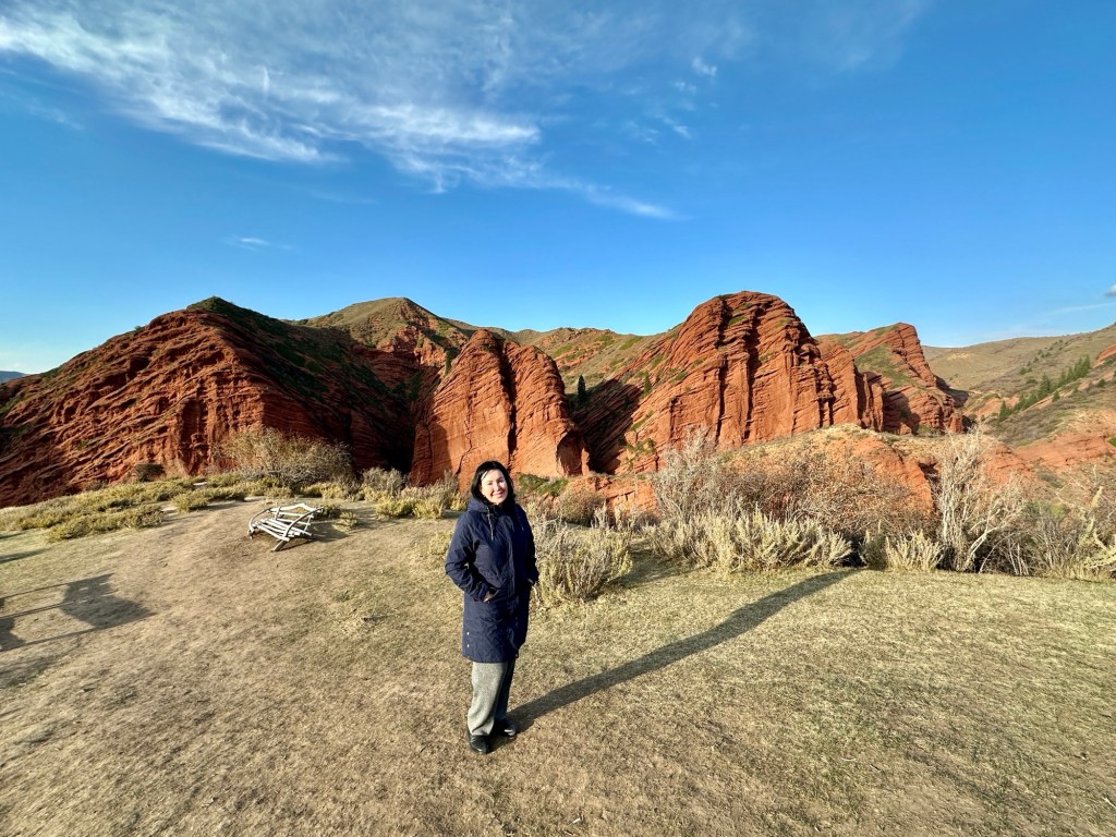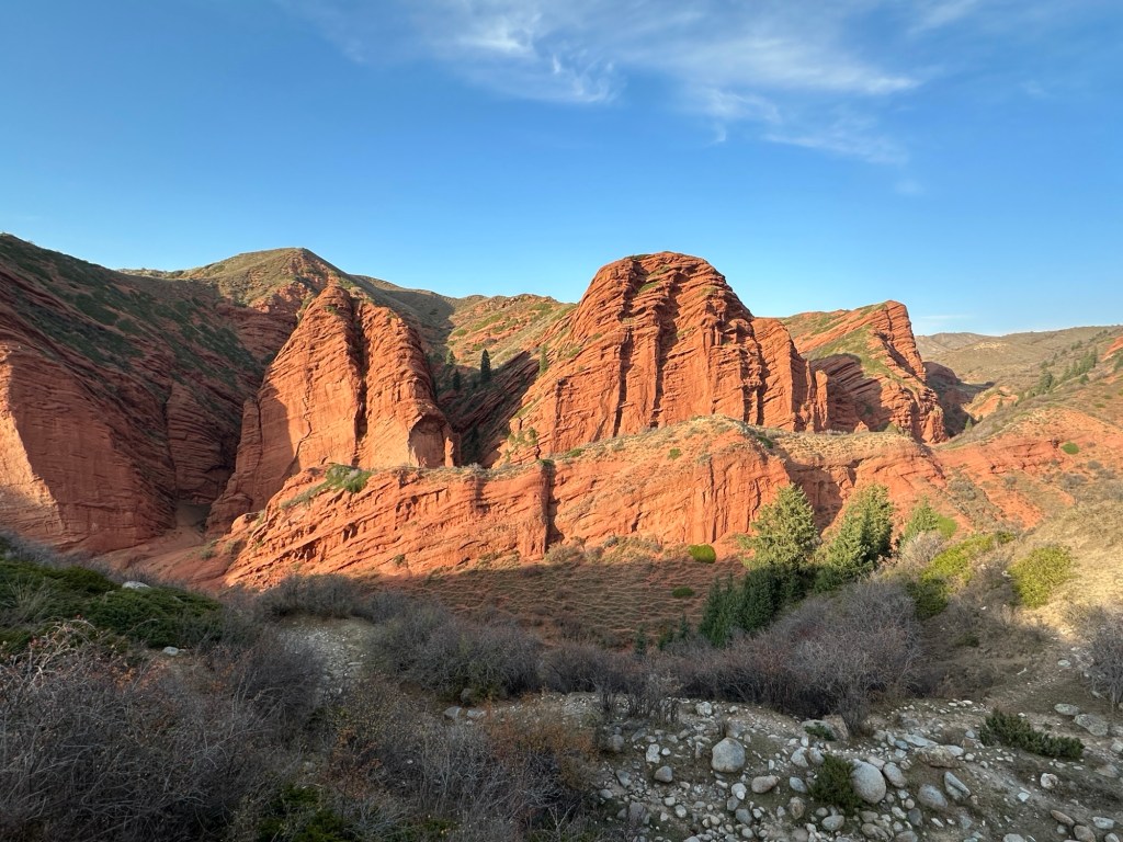 Another couple of hours drive to Jety Oguz gorge to observe Seven Bull rocks. The striking red eroded rock formations stand amidst the snow capped Tian Shan mountains. It’s a popular area for hiking and camping in summer.