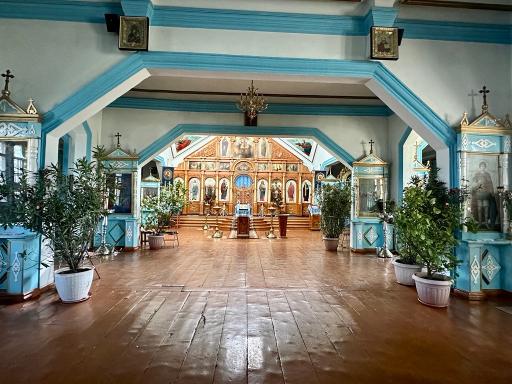 First stop, the Holy Trinity Orthodox Cathedral, built in the early XX century. This church was made of wood after it was renovated, quite simple inside compared to other Orthodox churches we’ve seen, also had many plants inside.