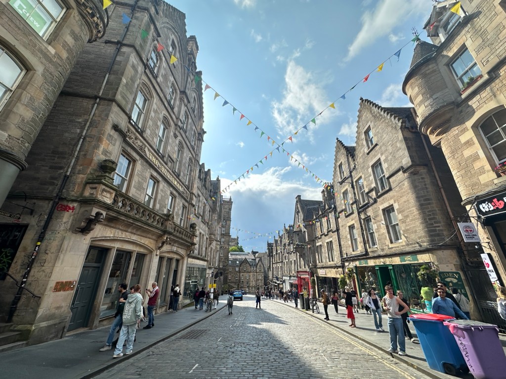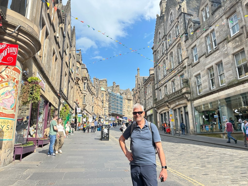 Anyway, this was how it was to be, we never spend much time in the room anyway, so out we go to explore Edinburgh. Whilst we were a little bit out of the city centre, the tram was only a couple of minutes walk away from the hotel, and a very easy ride into the city. We arrived into the New Town, had a late lunch, then walked into the Old Town to explore there. High Street was buzzing. A sunny afternoon saw everyone sitting outside in all the cafes, bars and restaurants. We thought we’d better join them for a pint.