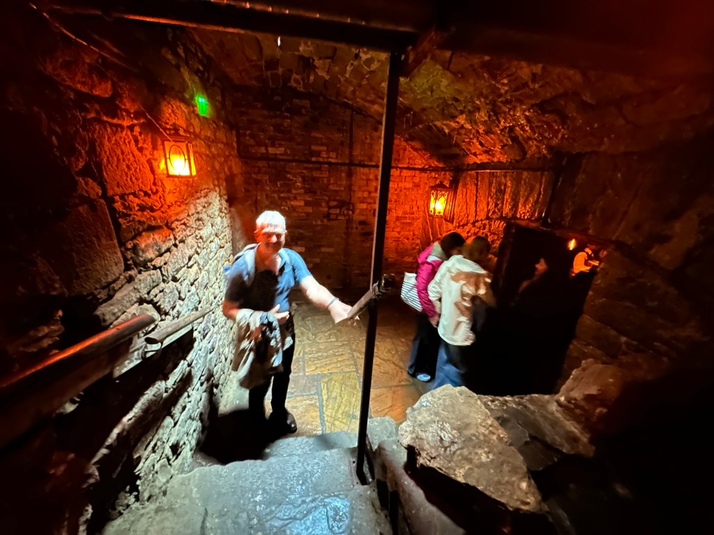 At 5pm we met up with our witch guide, Agnes, to experience the world’s most haunted city on a ghost tour and hear about the dark side of the Old Town. We were led by our witch down hidden closes and wynds (alleys – one has a gate, and one doesn’t ) off the Royal Mile and heard some of Edinburgh’s horrifying secrets. Completed in 1788, the underground vaults are a series of housed taverns, and chambers which stored illicit material, including dead bodies killed by serial killers Burke and Hare for their medical experiments.