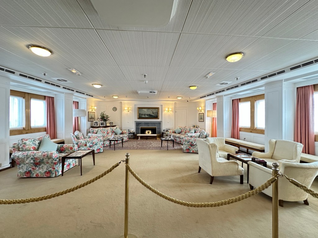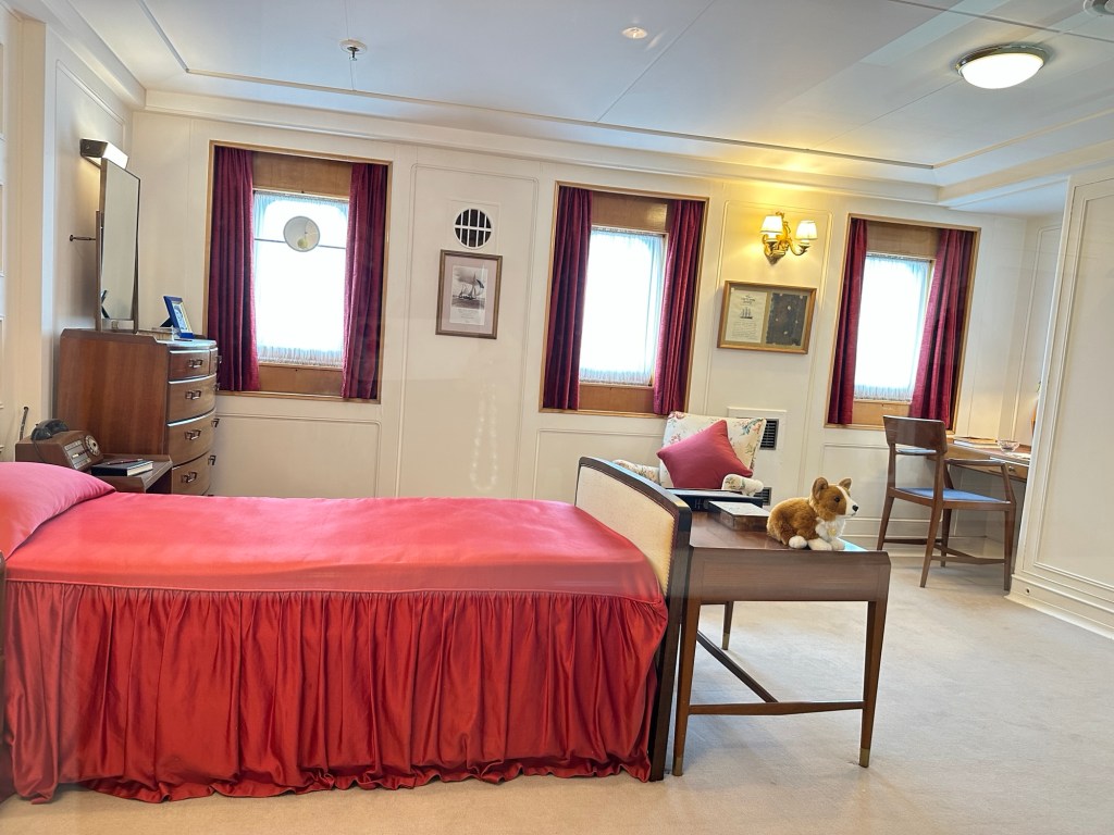 The nearby tram took 45 minutes to transport us direct to Ocean Terminal at Port of Leith – we wanted to be there for the opening of the Royal Britannia Exhibition. Her Majesty’s Yacht Britannia is the former royal yacht of the British monarchy. She was in their service from 1954-97. A Royal residence for over 40 years, the Britannia has sailed over 1,000,000 nautical miles on 968 state visits with the Royal Family where they entertained prime ministers and presidents. Britannia was decomissioned during Tony Blair’s government as it was deemed an unnecessary expense. All the clocks are set at 3.01pm – the time the Queen stepped off for the last time.