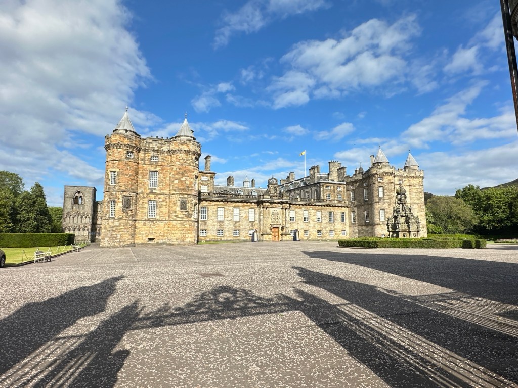 After leaving the castle we walked the length of the Royal Mile (it’s a Scottish Mile – a bit longer), stopping at a little bar. I had a Highland coffee which warmed me up nicely – it had a wee nip of whiskey in it). At the bottom of the Royal Mile was Hollyrood Palace – the official residence of the British monarch in Scotland. Tickets were not available for today, so we just had to view it from the gates. We wouldn’t have been able to fit it in anyway – it was 6pm by now.