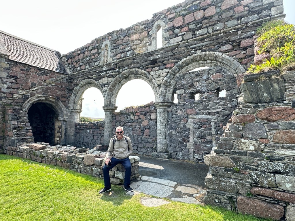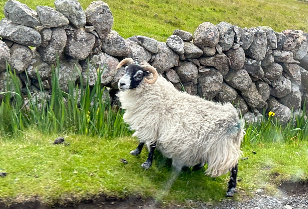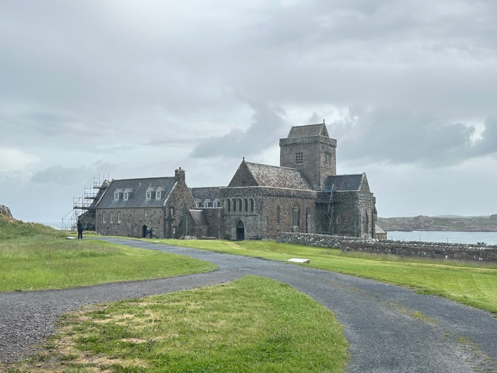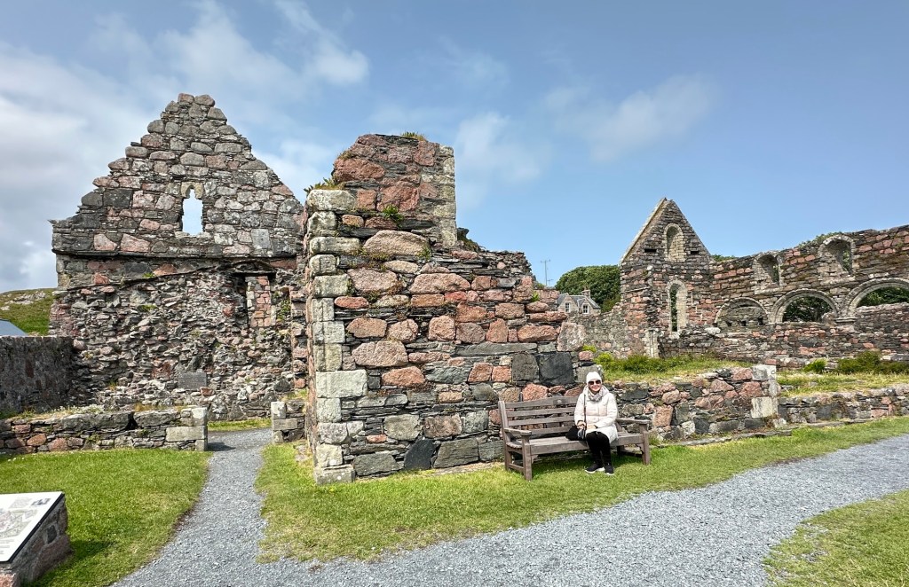 Plan B – travel across the rugged terrain of Mull and a ten minute ferry ride took us to the serene Isle of lona, known as the sacred heart of Scotland. Here we had three hours time to walk around the island, visit lona Abbey, the restored medieval abbey church and monastery buildings. The former monastery founded by Saint Columba in 563 was believed to be the original home of the Book of Kells( which we had just seen in Dublin).