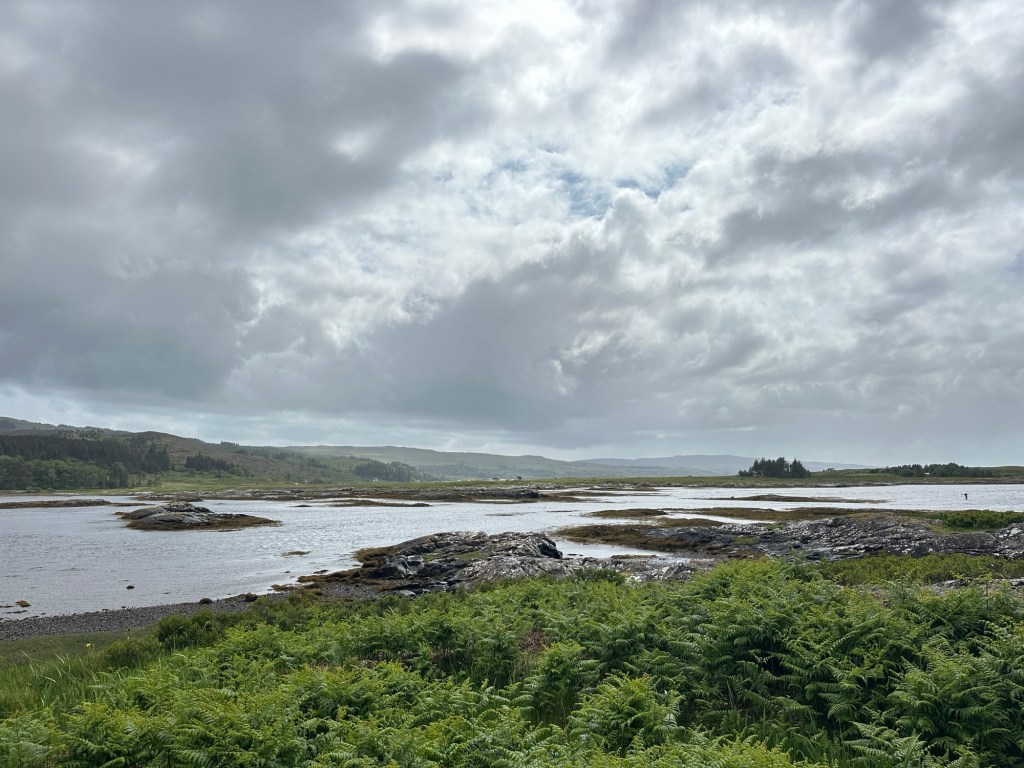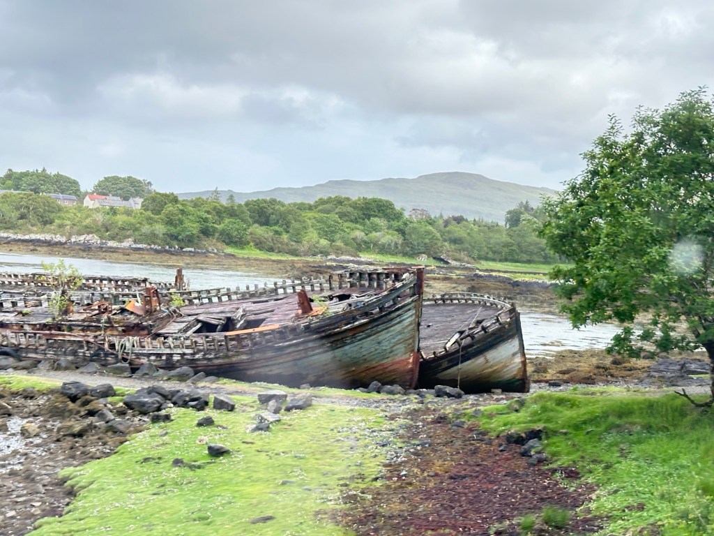From here, we take a ferry to the Isle of Mull, the second largest island of the Inner Hebrides. Thirty minutes later we arrive in Tobermory – a quaint little town with a tow of coloured houses, just as it starts to rain, and get settled in for two nights at the Mishish Guest House. We were on the third floor, no lift, instead a lovely view from our very large room. We have an interesting ceiling profile – 4 gables above us, which gives us 4x 45 degrees pitches in the room (hard to describe). I can’t count how many times we have knocked our heads on the gables! Then there is the shower over the bath with the same roof pitch, and a glass sky light. Travelling can be such an adventure!