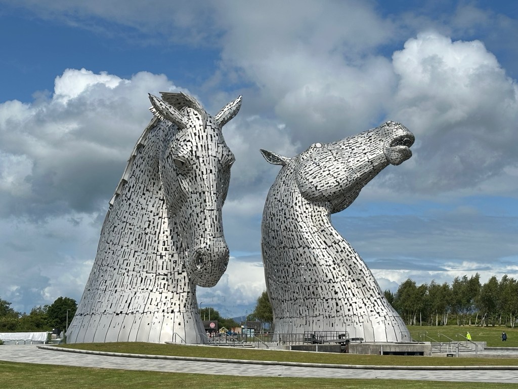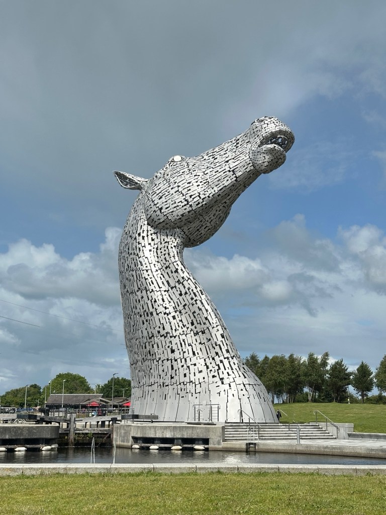 Today was a ride share to the airport (second attempt lucky – we had one cancelled ride even though I’d booked it the night before), and we picked up our Mazda C60. It was much newer than the Duster we had in Ireland. We navigated our way out off the airport and made our way to Falkirk, first to see the magical Kelpies.