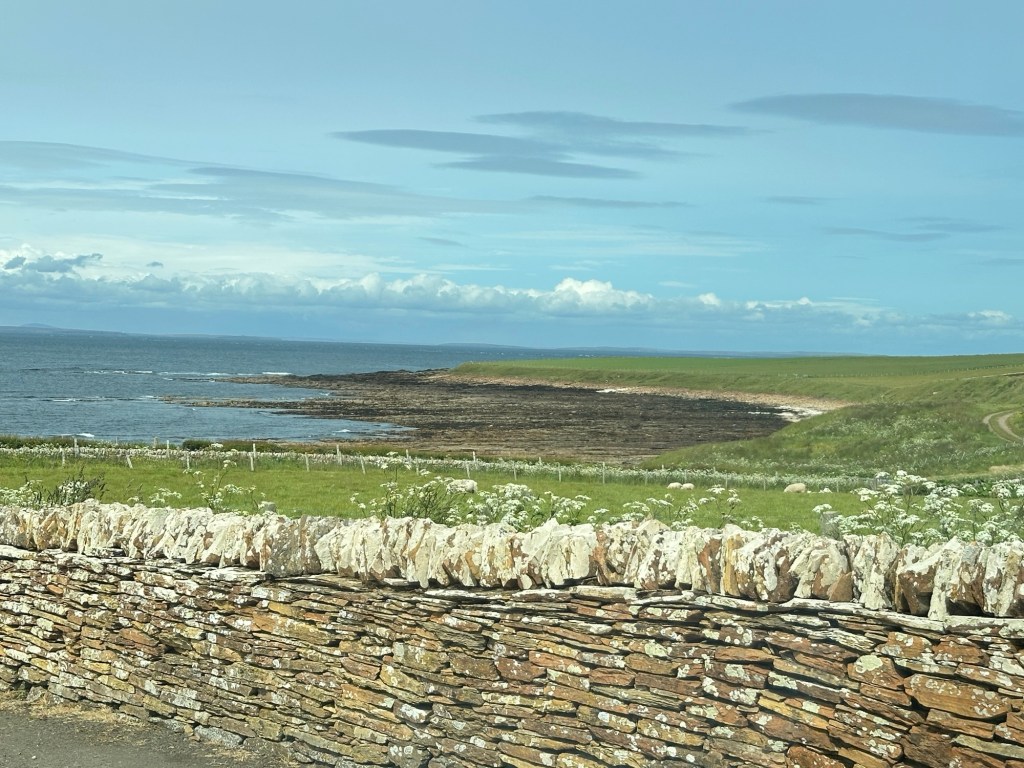 Dunnet Head is one of the best places in Britain to see breeding seabirds and is of national importance to some species. Close to the lighthouse we saw many of them flying to and from their nesting ledges and burrows. These included guillemots, razorbills, kittiwakes and fulmars, all of which breed on the cliffs in large numbers. We also saw some puffins … very exciting. They were flying around, flapping their little wings. They are quite small but easily distinguished from the razorbills and guillemots by their orange feet. I couldn’t manage a decent photo with my phone, but we definitely saw them!