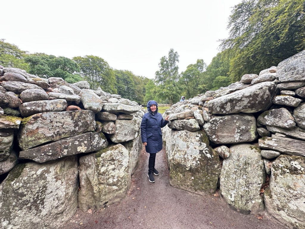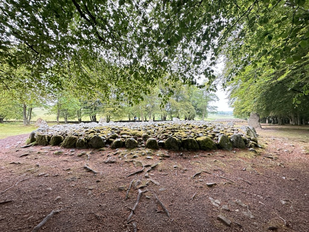 Not far away was the Balnuaran of Clava – a sacred site from the Bronze Ages. Here there are four cairns and three stone circles. One thought is that the farmers of the Nairn valley raised these cairns to house their dead 4,000 years ago. Only the most important members of their communities would have been interred in them. More recent conclusions are that the cairns were not burial monuments but the remains of buildings for the living. Fascinating.