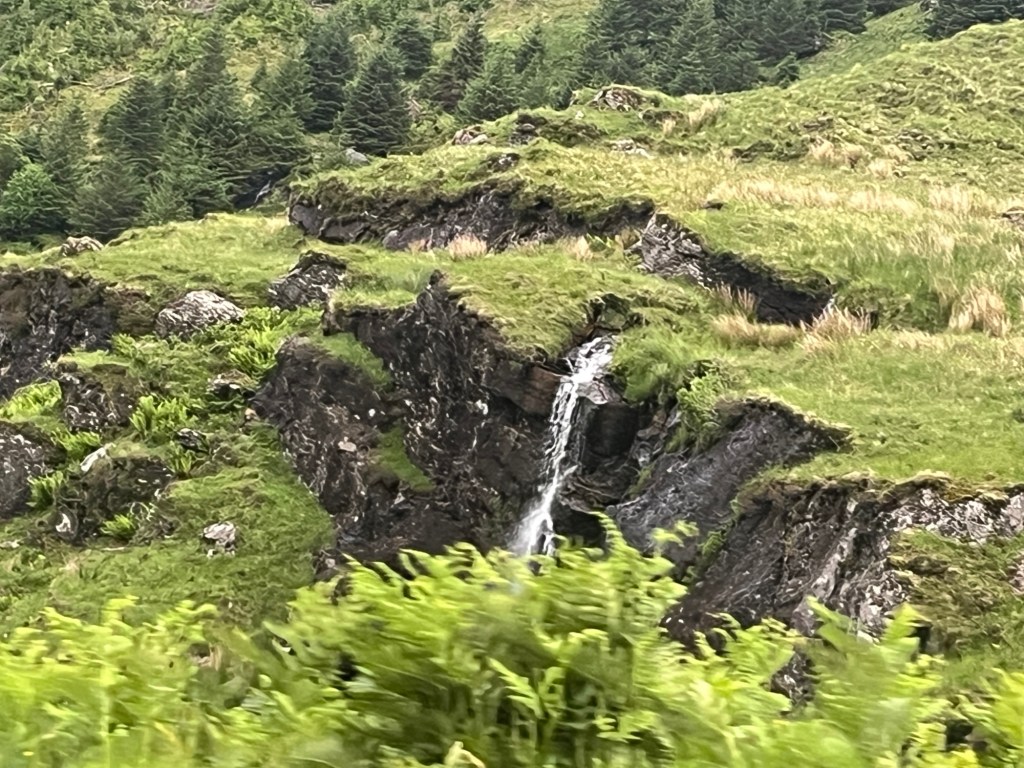Next a stop at historic Dunadd Fort – a fortress that was at the heart of the Gaelic kingdom of Dal Riata more than 1,300 years ago. It is one of the most important and evocative early medieval sites in Scotland. We clambered up the rocky path, and nearly got blown away at the top. More spectacular views – definitely 50 shades of green !