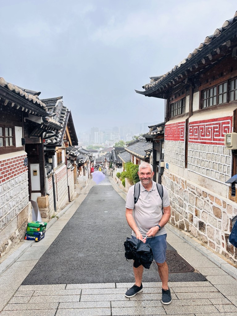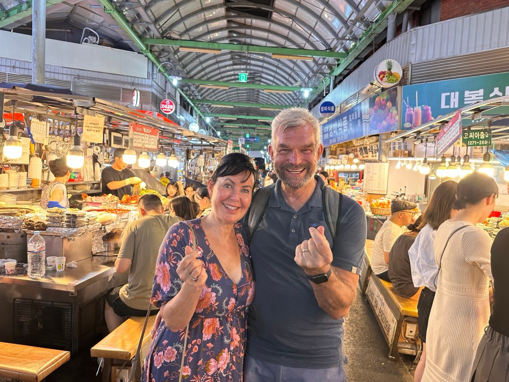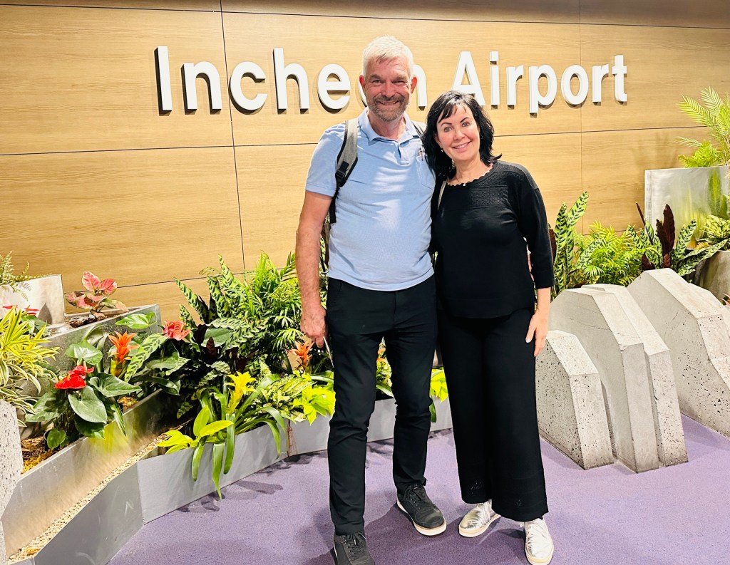 It was close to a 10 hour flight on a Qantas Airbus A330 to Seoul. I like the A330 configuration – 2,4,2. Whatever configuration it is, it’s still a long time to sit – I think I got through 5 movies. One little hiccup – Frank’s wallet had fallen out of his pocket when he went to the toilet. He only realised five minutes before the crew made an announcement that the wallet had been handed in. Luckily only a short period of panic mode!