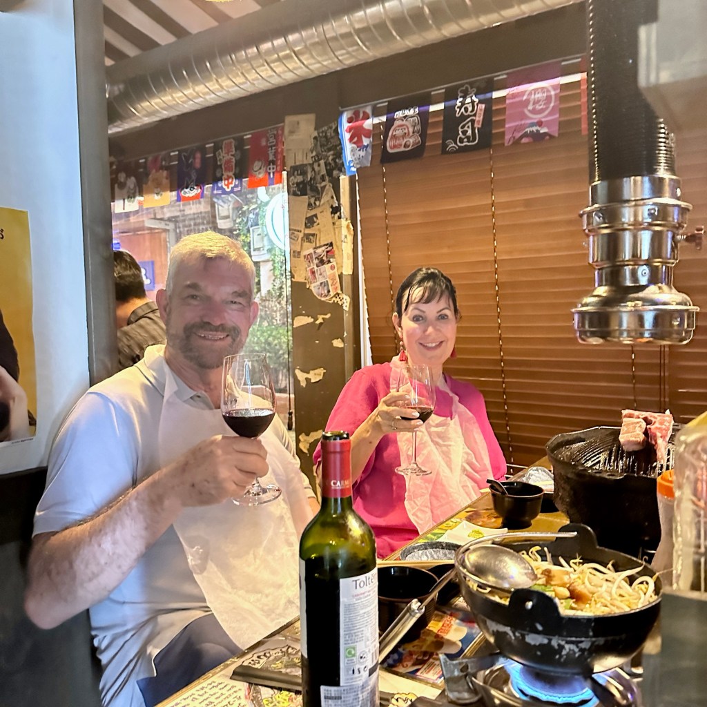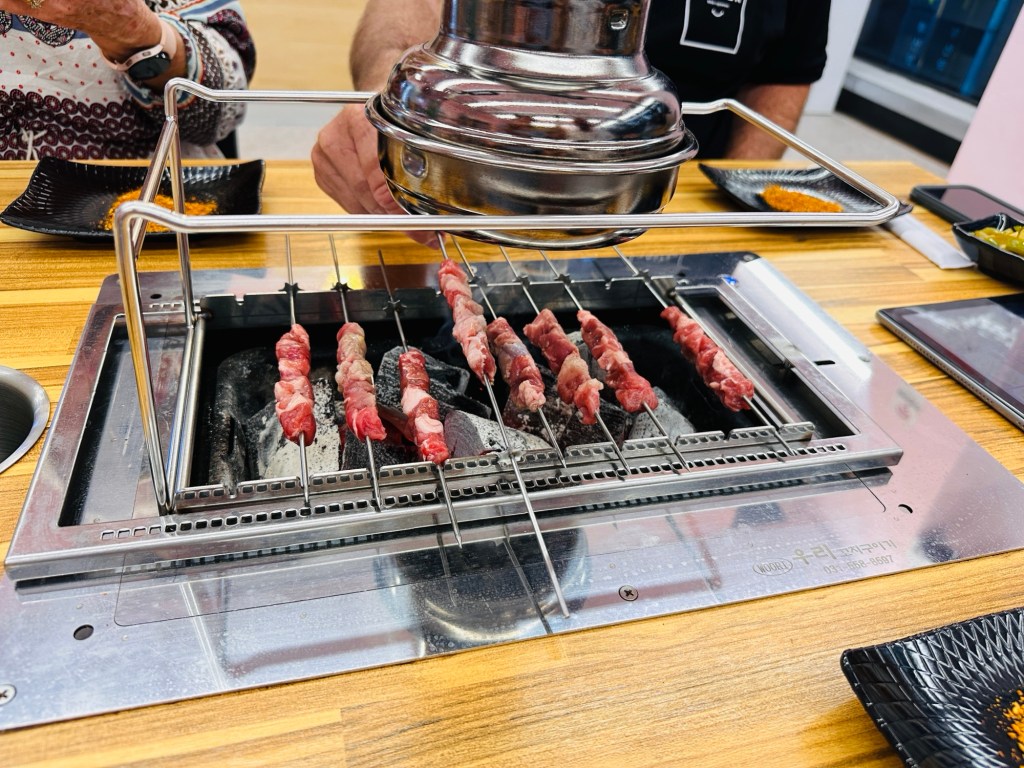 We found the loveliest Korean bbq restaurant which only serves lamb ( it seems they specialise in one food only). We had the sweetest host who cooked the lamb and vegetables for us, and also explained the accompanying condiments and sauces, and how to eat everything. Heaps to eat, and a bottle of Chilean Cabernet Sauvignon set us back $65. What a lovely end to our first full day in Seoul.