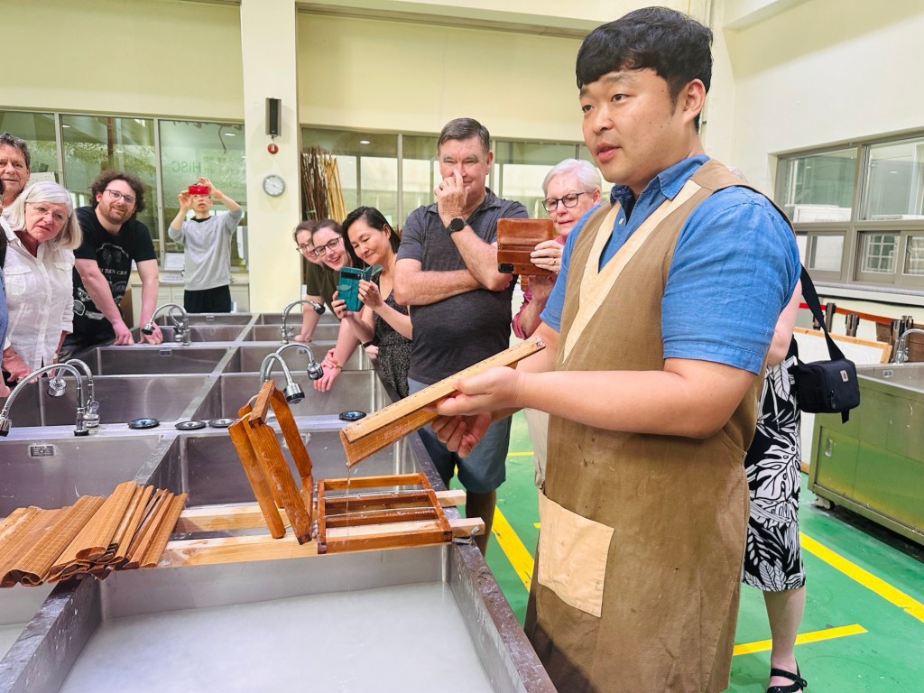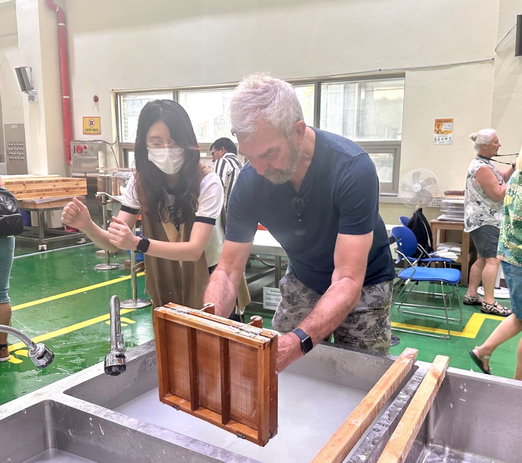 First adventure today was a visit to Hanji Centre (Korean Traditional Mulberry paper), Korea’s first centre specializing in paper. It has an extensive collection of 3000 artifacts and a database documenting the long history and superiority of Hanji (Korean paper). We had the opportunity to make our very own Korean paper – it was a lot of fun!