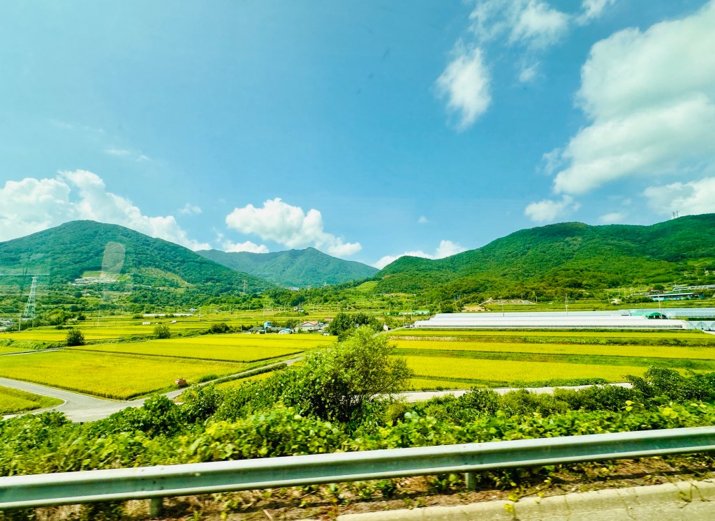 Lunch stop, and we managed to find a small restaurant that had grilled fish. We were the only customers, and the owner spoke no English. We muddled through, and ended up with four different fish on a plate – all whole. We managed to sort through the bones, and enjoyed the fish with the accompanying kimchi and other condiments.