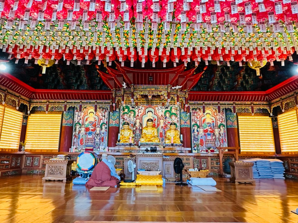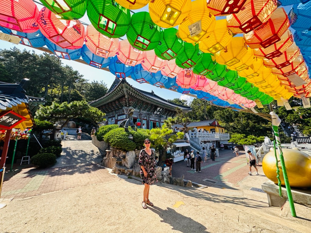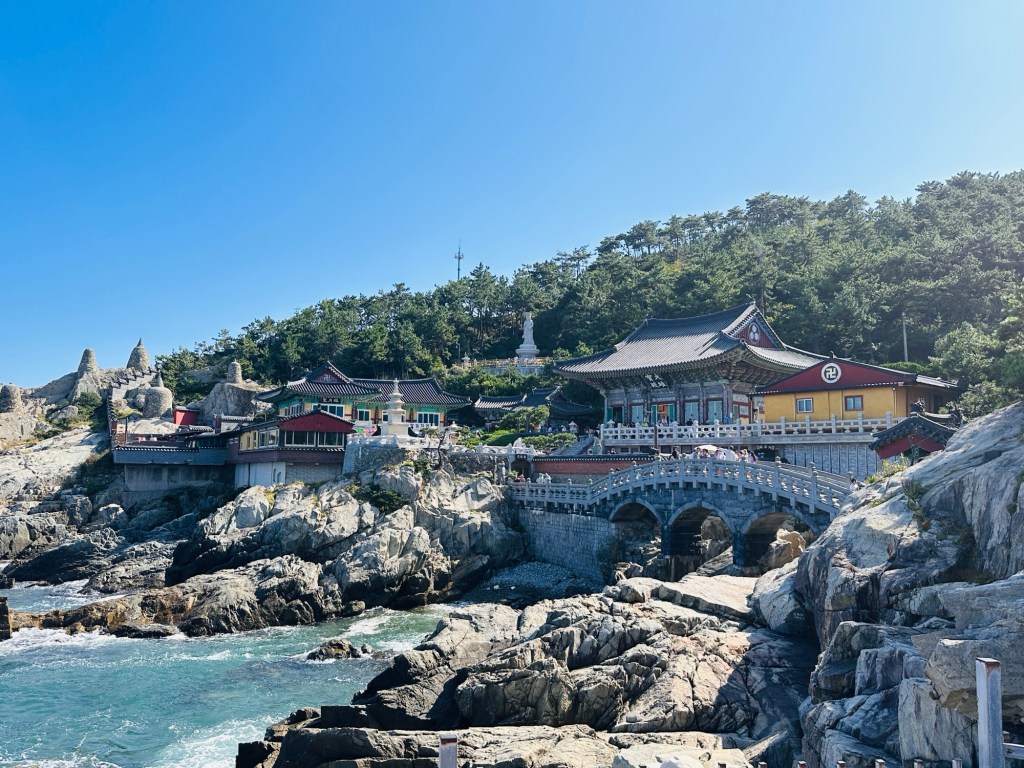 Our first stop was a visit to Haedong Yonggungsa Temple which is situated on the coast of the northeastern area of Busan. This beautiful Buddhist temple on the shoreline is unusual as most temples in Korea are located in the mountains. It was extremely hot, so the sea breeze was a welcome relief.