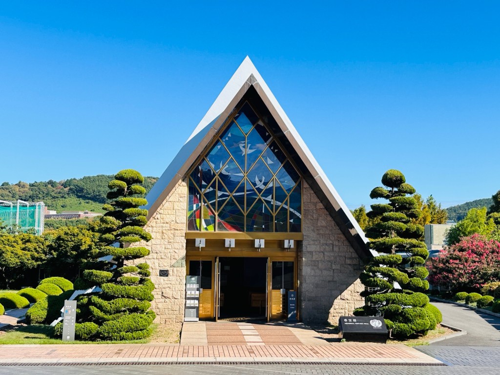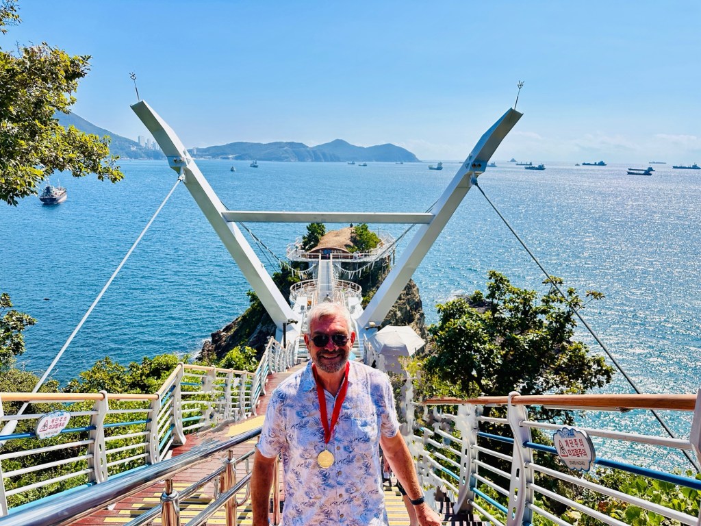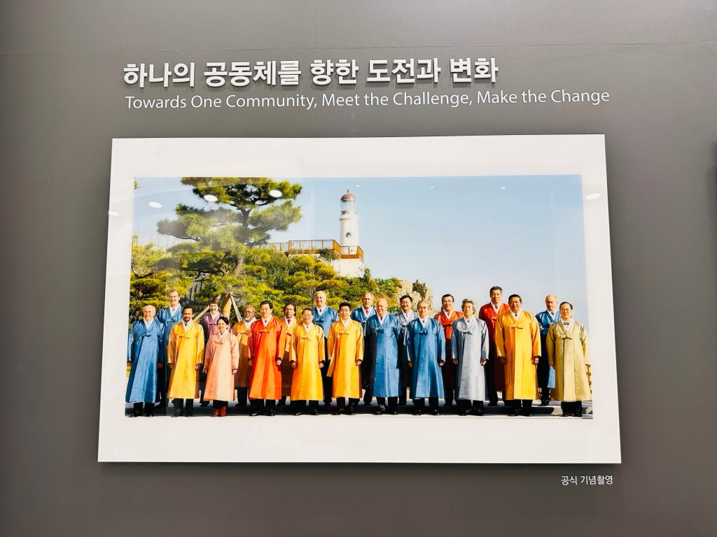 Next the Nurimaru APEC House, built to host the 2005 APEC Summit meeting at the tip of Dongbaek Island which stands near Haeundae Beach. This eye-catching glass building has been one of Busan’s symbolic places ever since. More spectacular views. Walked through the building and saw where all the country leaders sat.