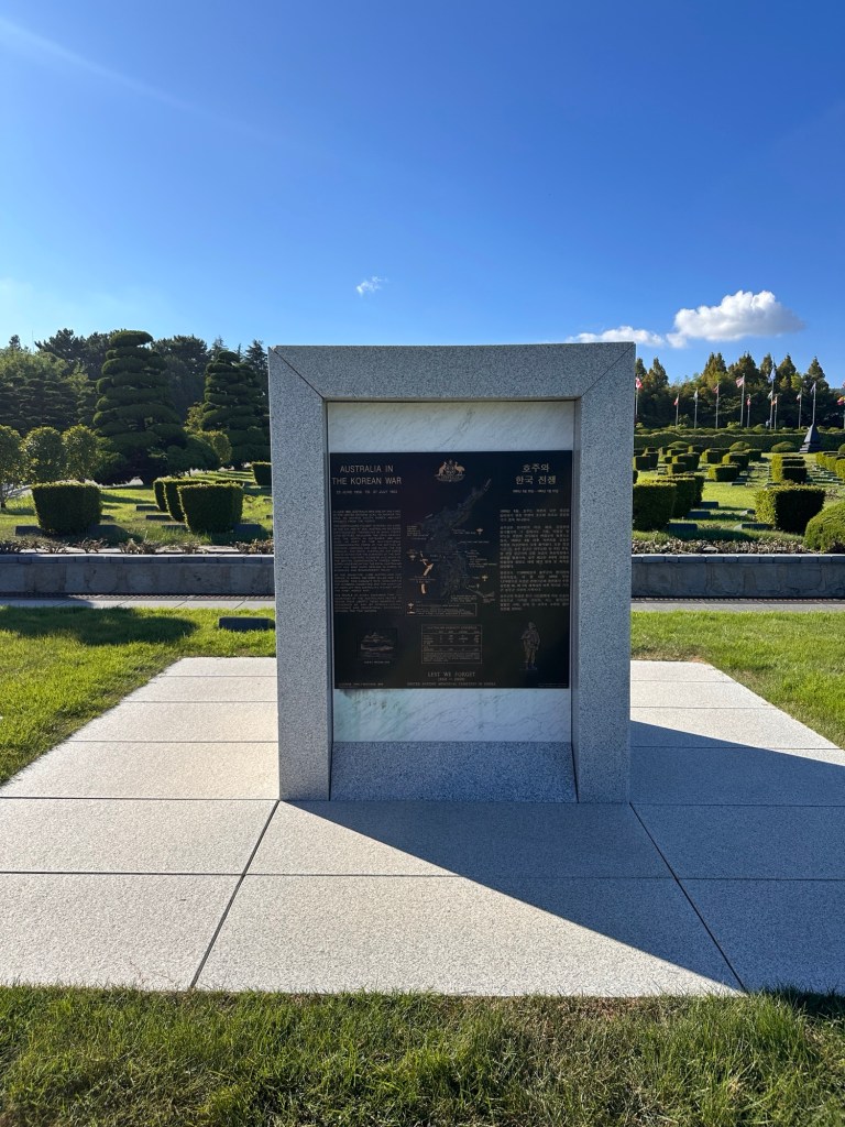 After driving over the 7.4-kilometre Gwangandaegyo Bridge, the longest bi-level bridge over the ocean in Korea, we arrived at the UN Memorial Cemetery – the only one in the world. It is the final resting place of UN Forces who served during the Korean War. 21 nations assisted Korea. 281 of the fallen 346 Australian soldiers are buried here. A very sobering tour, but comforting to know that Korea appreciates the soldier’s efforts.
