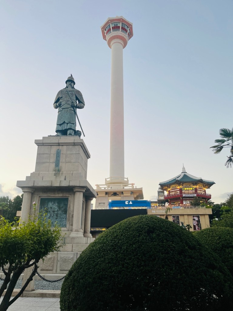 Last stop for the day was the Yongdusan Dragon Head Park – it is called Yongdusan because the shape of the mountain resembles a dragon’s head emerging from the sea.The 120-metre-high Busan Tower is also located in the middle of the park. It provides a stunning bird’s-eye view of the entire city, including islands and ships dotted in the distant seas. A statue of General Lee stands at the entrance to the park – he invented iron clad warships in the 1500’s.