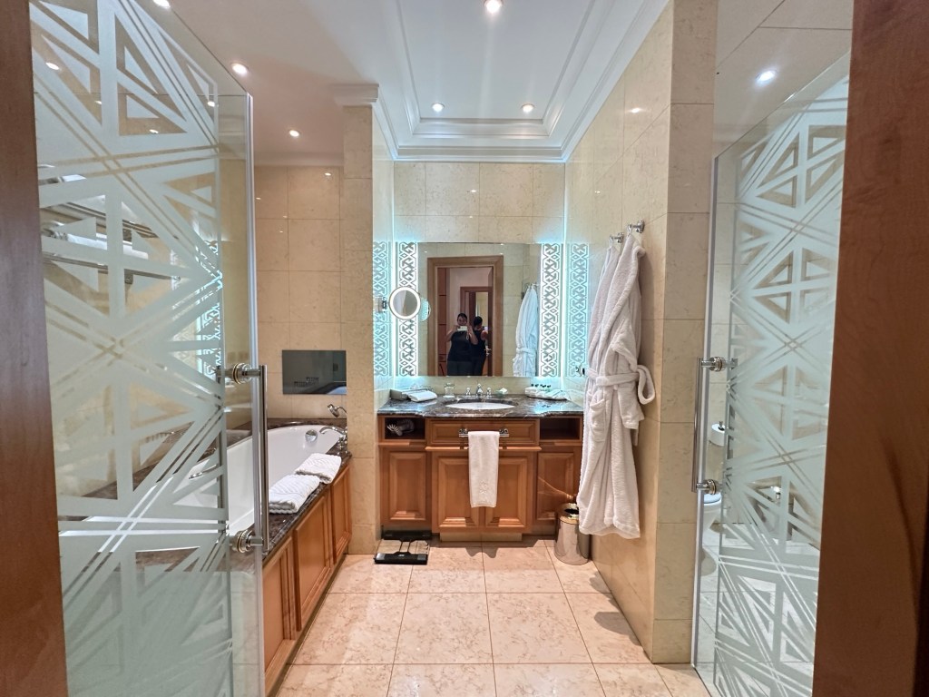 Inside, the opulence dialled up another notch. Our suite felt bigger than our apartment back home—high ceilings, plush carpets, and a view that made us want to stay awake forever. The bathroom floor was heated even though it was 30 degrees outside. But at 4 a.m., even starry-eyed travellers need sleep. Time to explore more tomorrow.