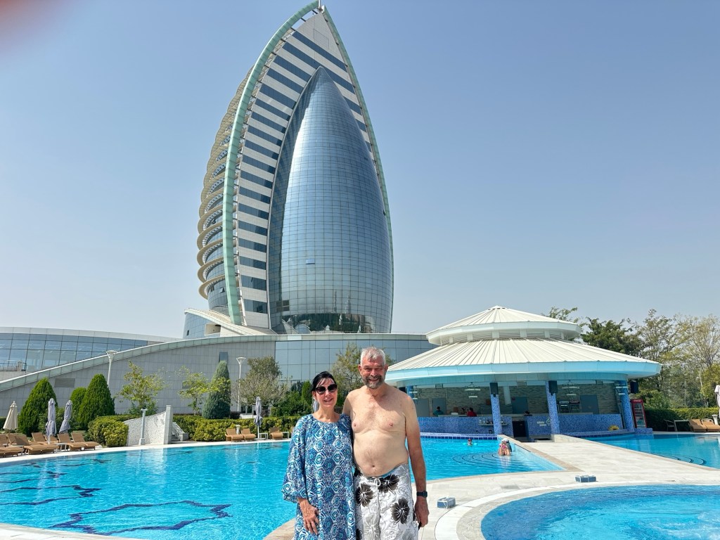 We also went to the Turkmenistan Independence Memorial, Monument arch of Neutrality, Independence Park, and so many more. More driving around enjoying the beautiful buildings. The indoor Ferris Wheel was spectacular – 50 meters in height and 60 meters in diameter, it is part of the Alem Cultural and Entertainment Center.