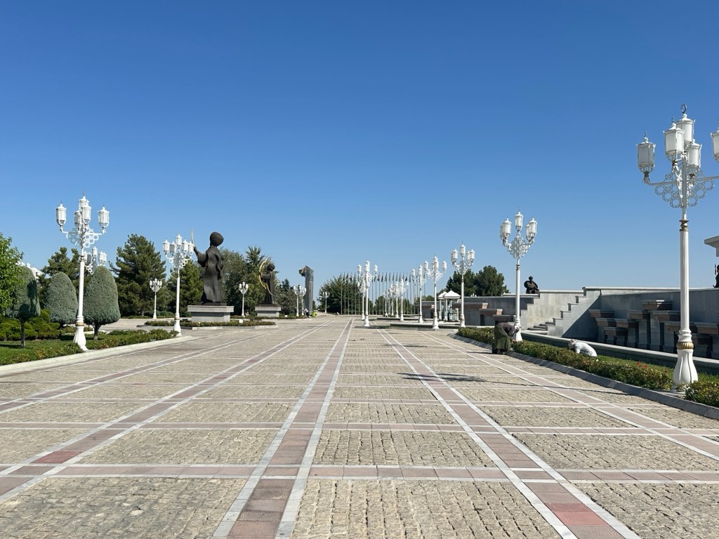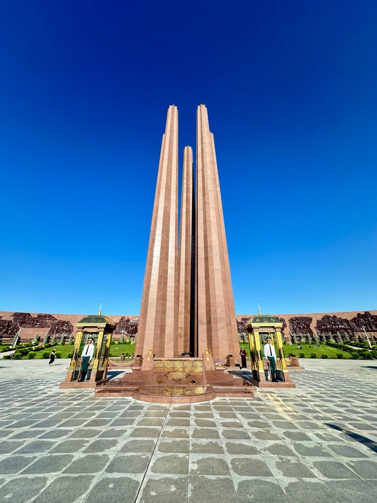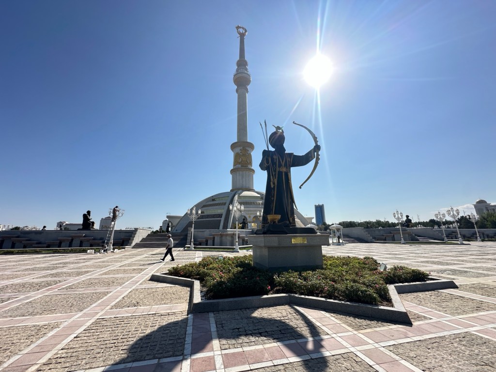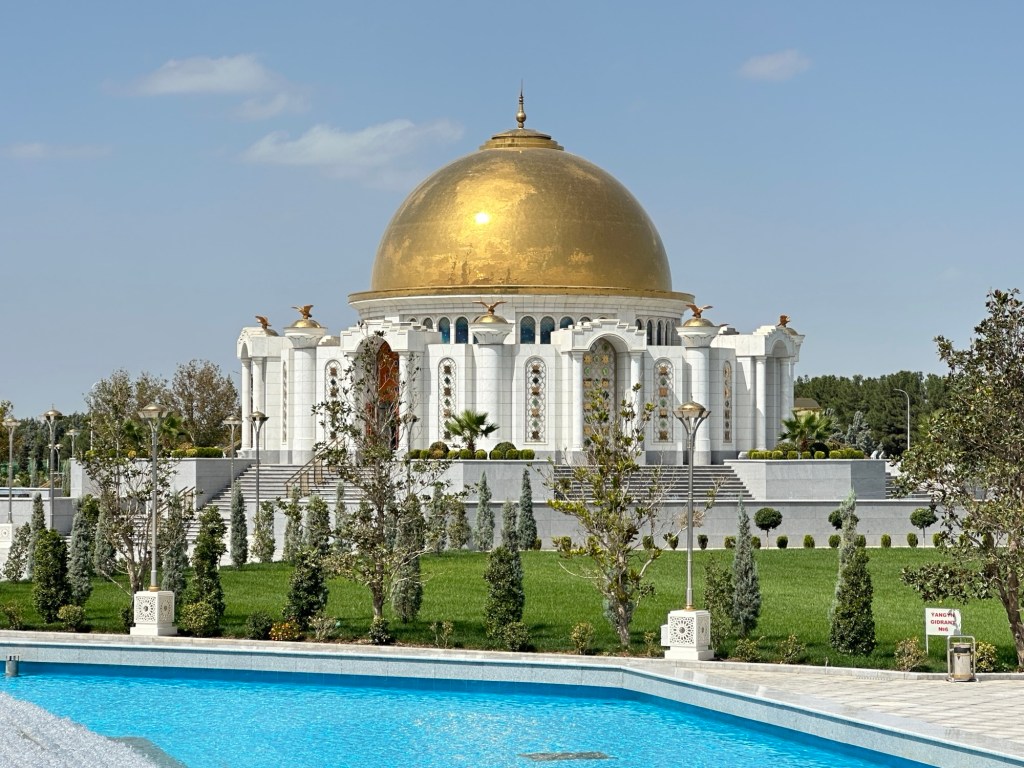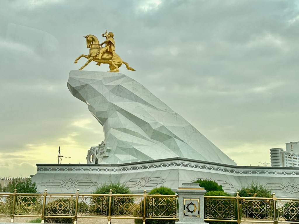 Ashgabat is a fascinating city. It was rebuilt in Soviet style in the mid-20th century after a massive earthquake levelled the city in 1948. It is famous for its white marble buildings – it has recently been noted by the Guinness Book of World Records as having more white marble buildings than any other city in the world. Ashgabat is also noted for its grandiose monuments honouring former president Saparmurat Niyazov. Independence from the Soviet Union was on 27th October 1991. Niyazov moved seamlessly from being Chairman of the Turkmen Soviet Socialist Republic to President of Turkmenistan, taking the name Turkmenbashi (Father of all Turkmen) and declaring himself President for Life in 1999.