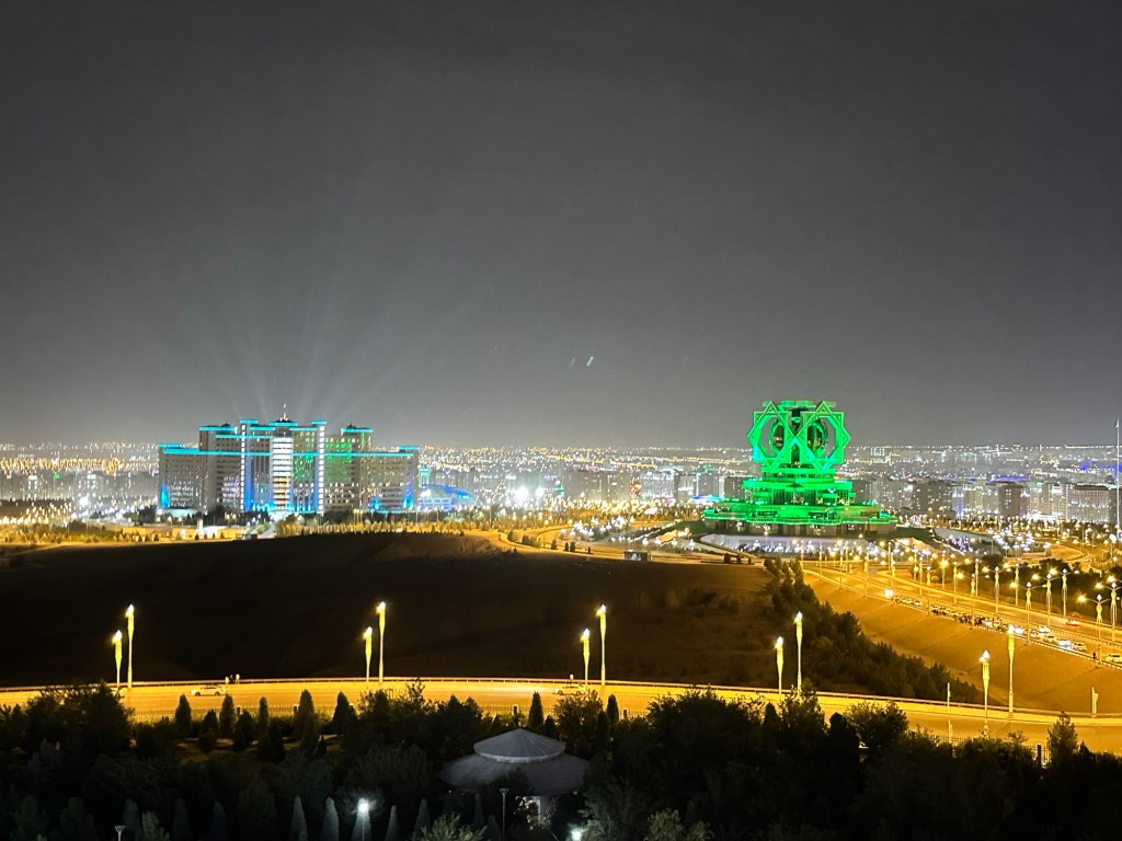 Bahtiyar whisked us away through Ashgabat’s midnight glow, and suddenly the city felt like a giant neon playground. Stadiums, shopping malls, and even the most solemn government buildings blazed with colour—an electric skyline that could have been Vegas or Dubai on a caffeine high.