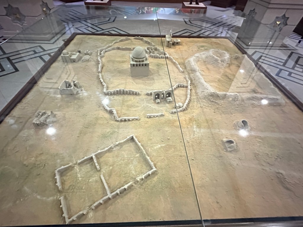 Today was a sightseeing tour of Ashgabat. Our first stop was to the archaeological site of Old Nisa which is included in the UNESCO World Heritage list. Nisa was the initial capital of the Parthians when it probably functioned as a sanctuary for early Arsacid kings, with evidence of a shrine, temple, palace and treasury. Much of their art was influenced by the Greeks, as exemplified by the classical gods and goddesses adorning many of Nisa’s carved ivory rhytons, now in the National Museum. The site also seems to have some connection with the local Zoroastrian religion, but was abandoned during the 1st century BC after a severe earthquake. Excavations continue.
