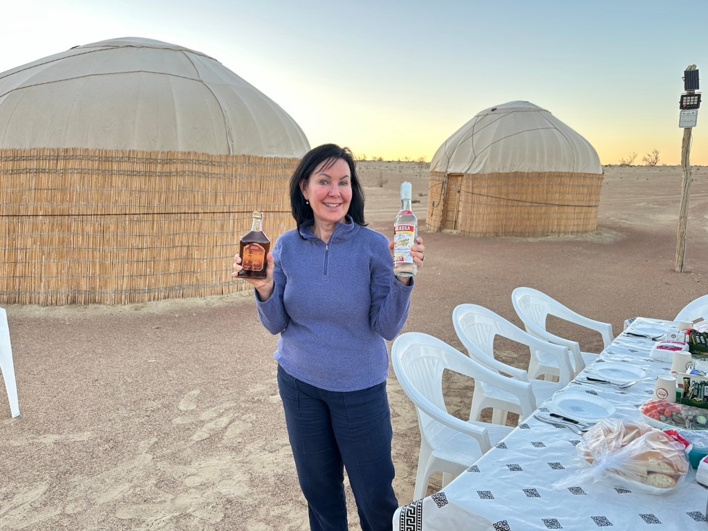 Reality re-asserted itself on the final leg – a three and a half hour hop, in the back of the plane from Istanbul to Ashgabat, Turkmenistan, on Turkish Airlines. Our feast of fine dining and French Bordeaux gave way to a single option of tepid pasta and a humble glass of Turkish red. A gentle reminder, perhaps, that the real adventure was about to begin—and that our “first-world problems” were best left at 30,000 feet.